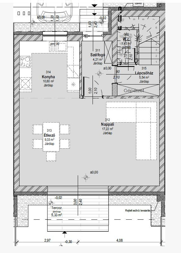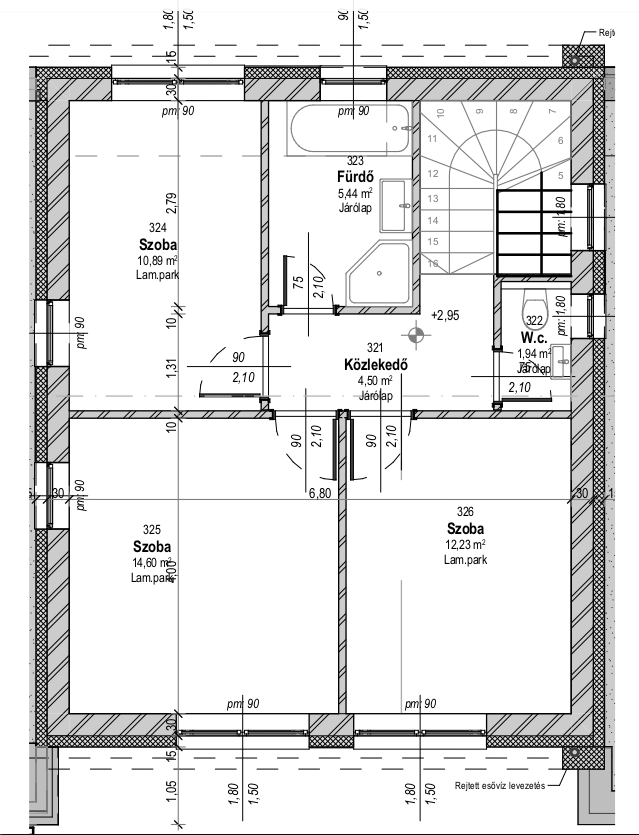 Födémszerkezet 20 cm vastag monolit vasbeton szerkezet XPS kiegészítő hőszigeteléssel.