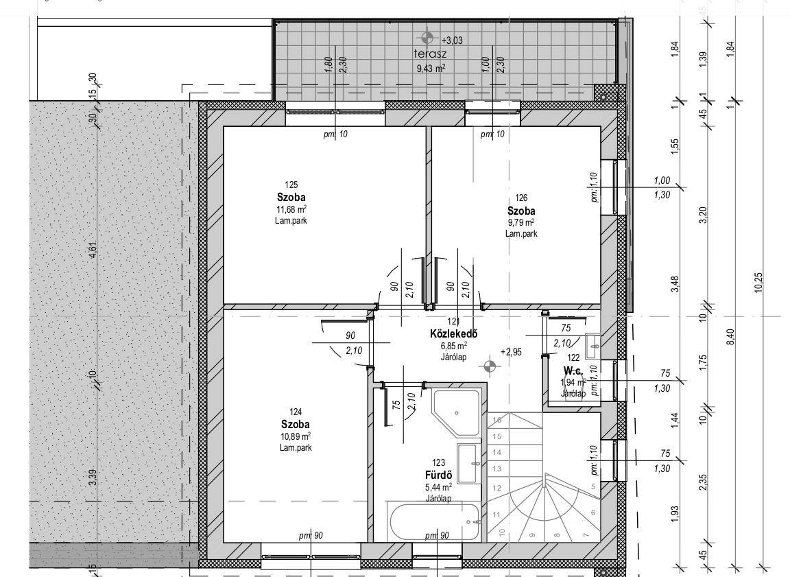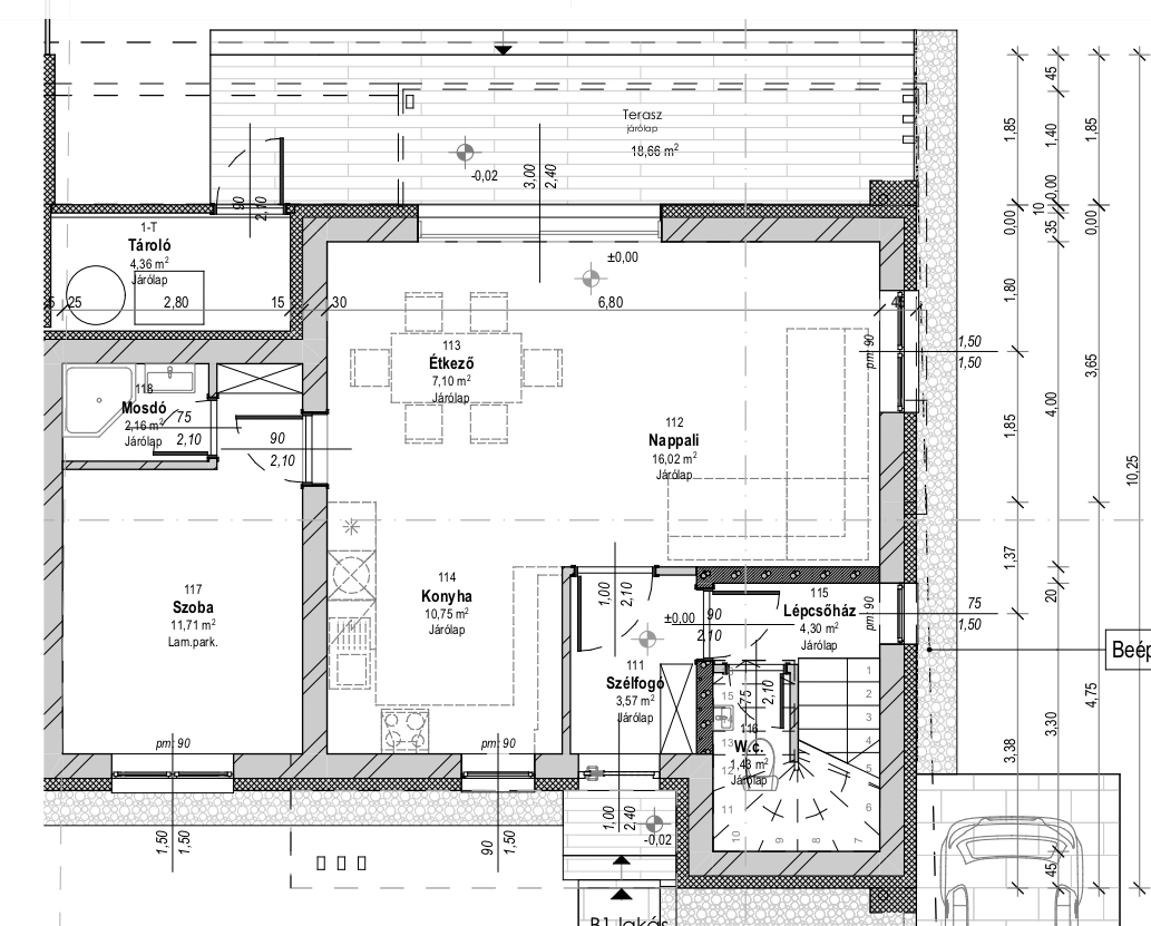 Födémszerkezet 20 cm vastag monolit vasbeton szerkezet XPS kiegészítő hőszigeteléssel.
