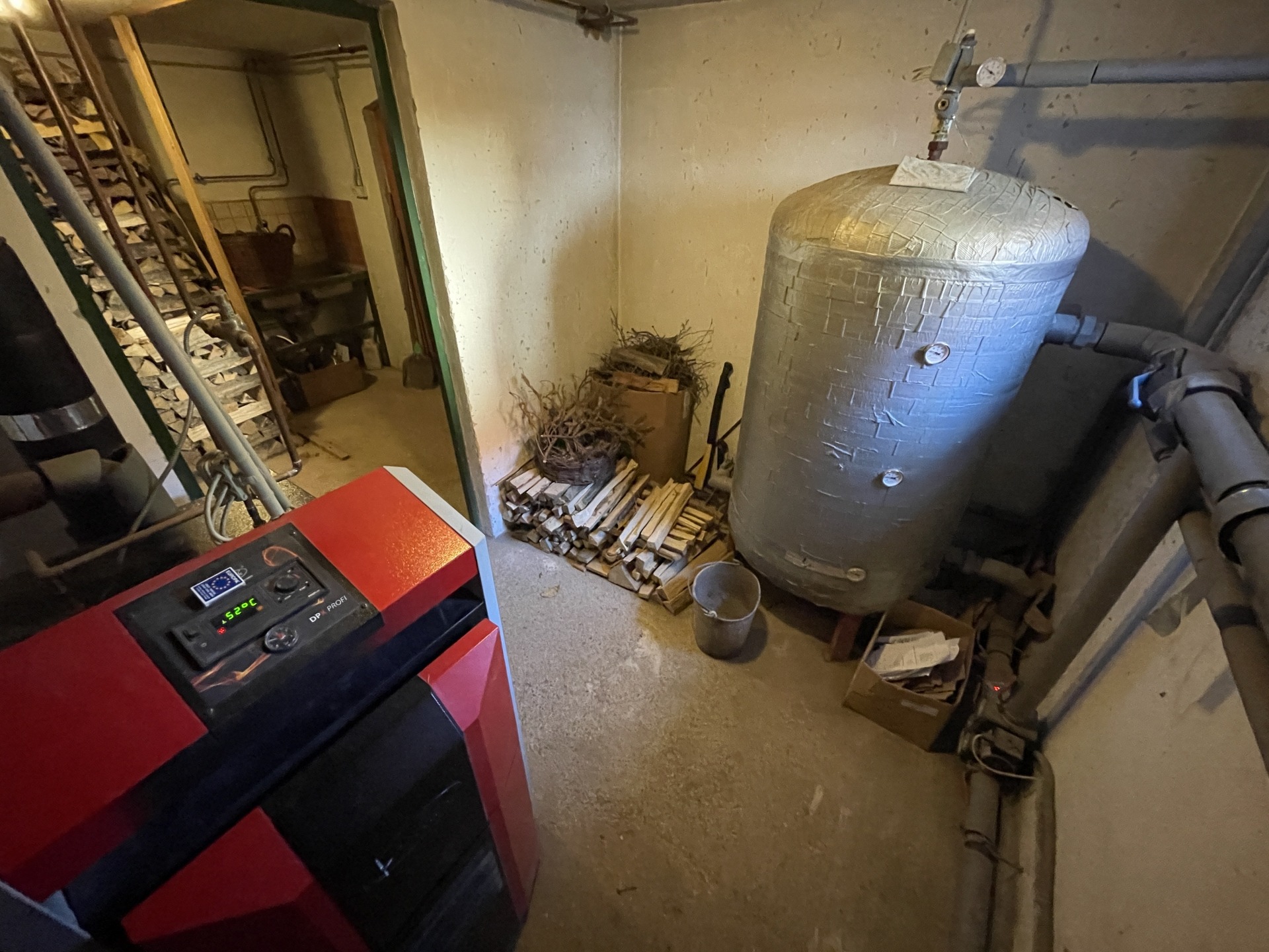 41,61 m²-es pince, ahol kazánház, fa tüzelésű kazán, tárolók és zöldségtároló is helyet kapott