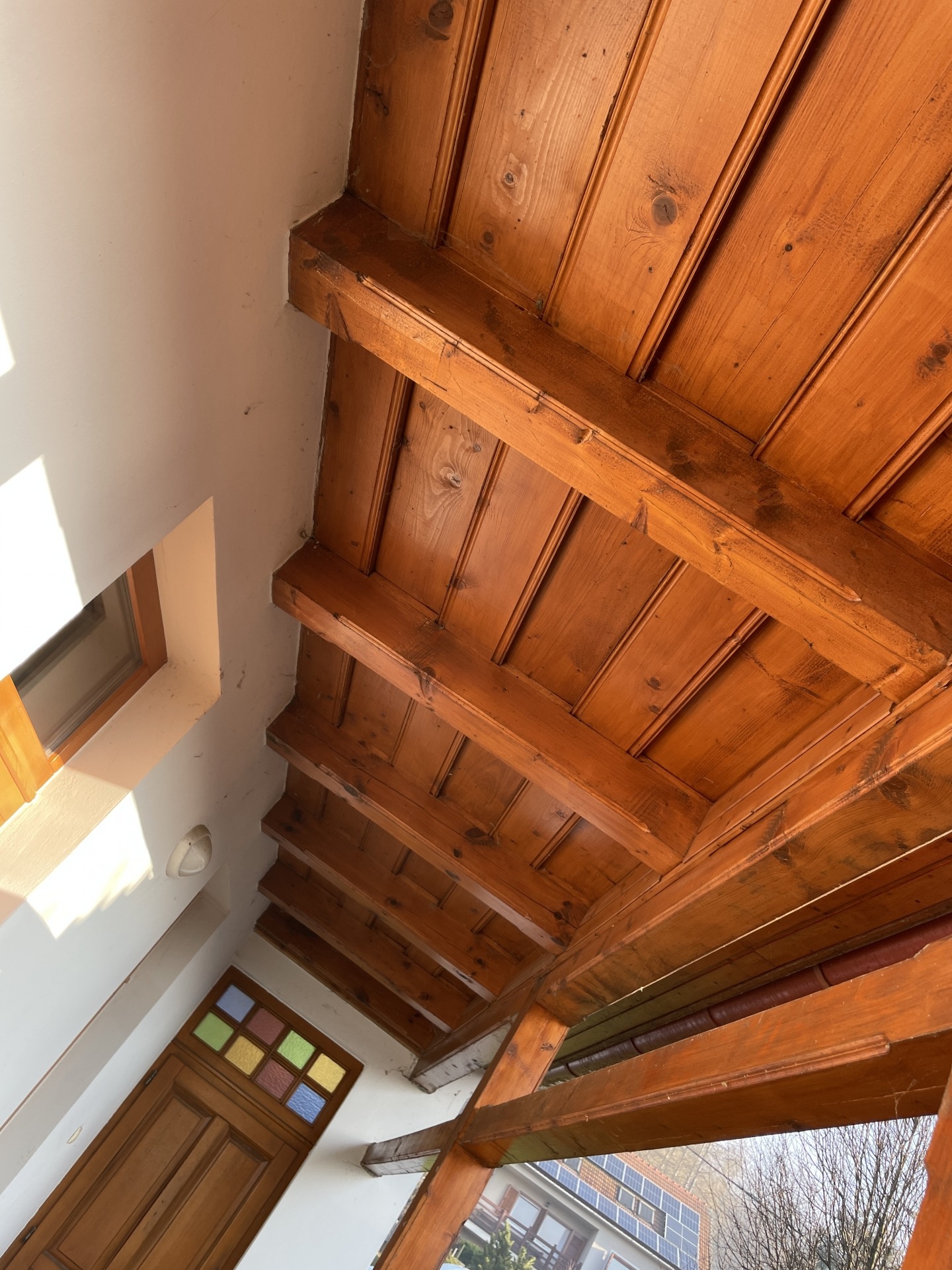 Hangulatos fagerendás mennyezet,galéria, járólap és hajópadló kombinációja