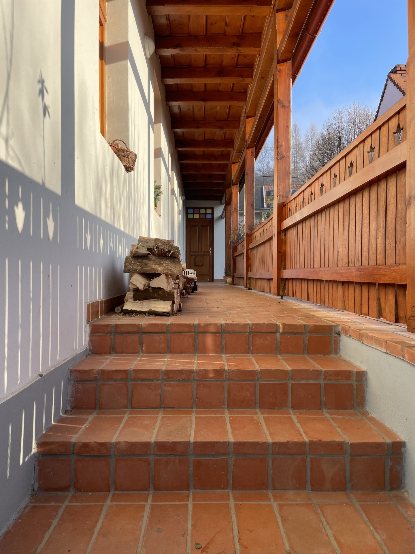 22 m²-es tornác, amelyről mesés kilátás nyílik a rendezett udvarra és kertre.
