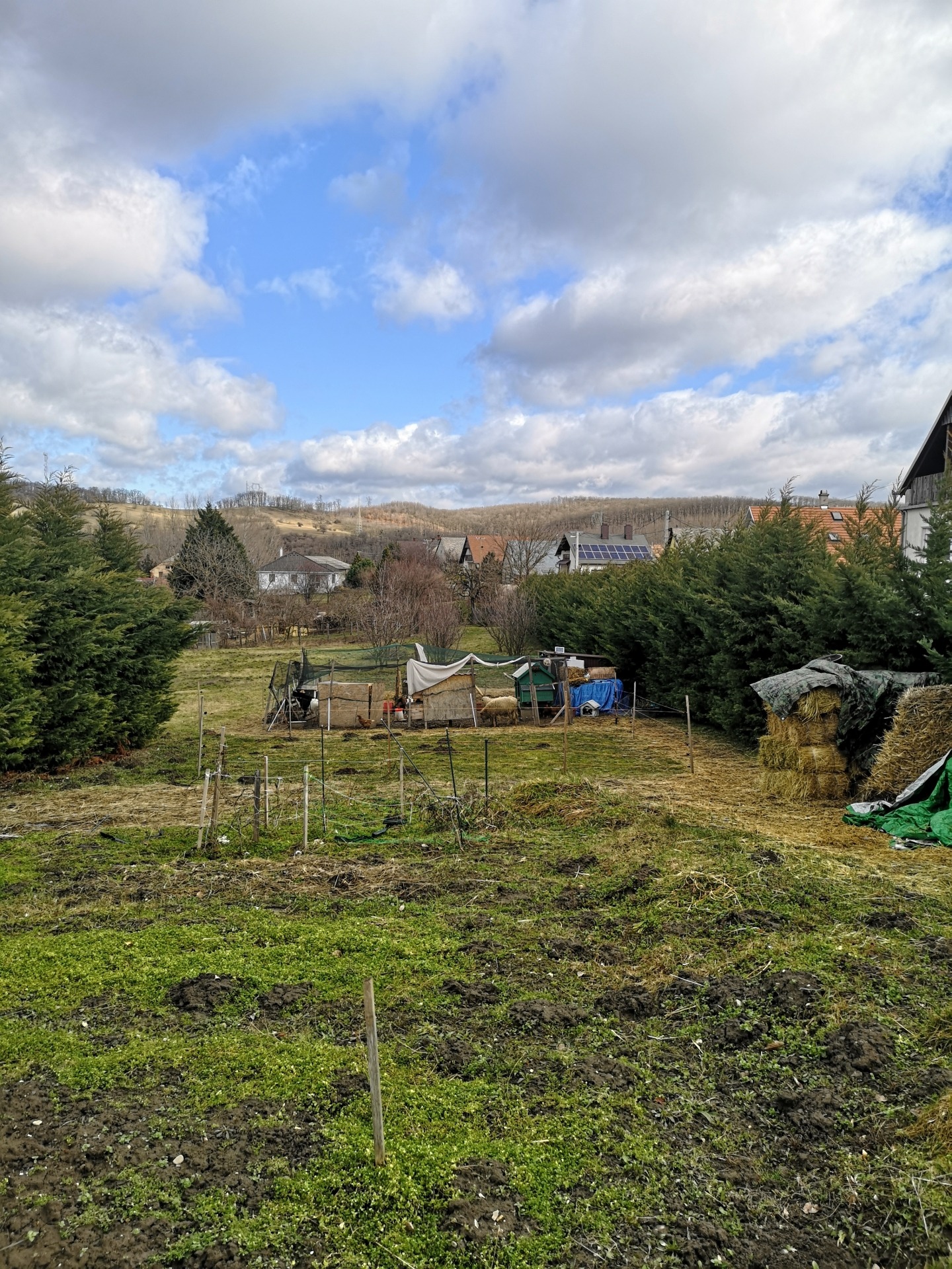 A hátsó kert gazdálkodásra alkalmas (fóliasátor, fúrt kút, tárolók/garázsok), a telek két irányból is megközelíthető autóval.