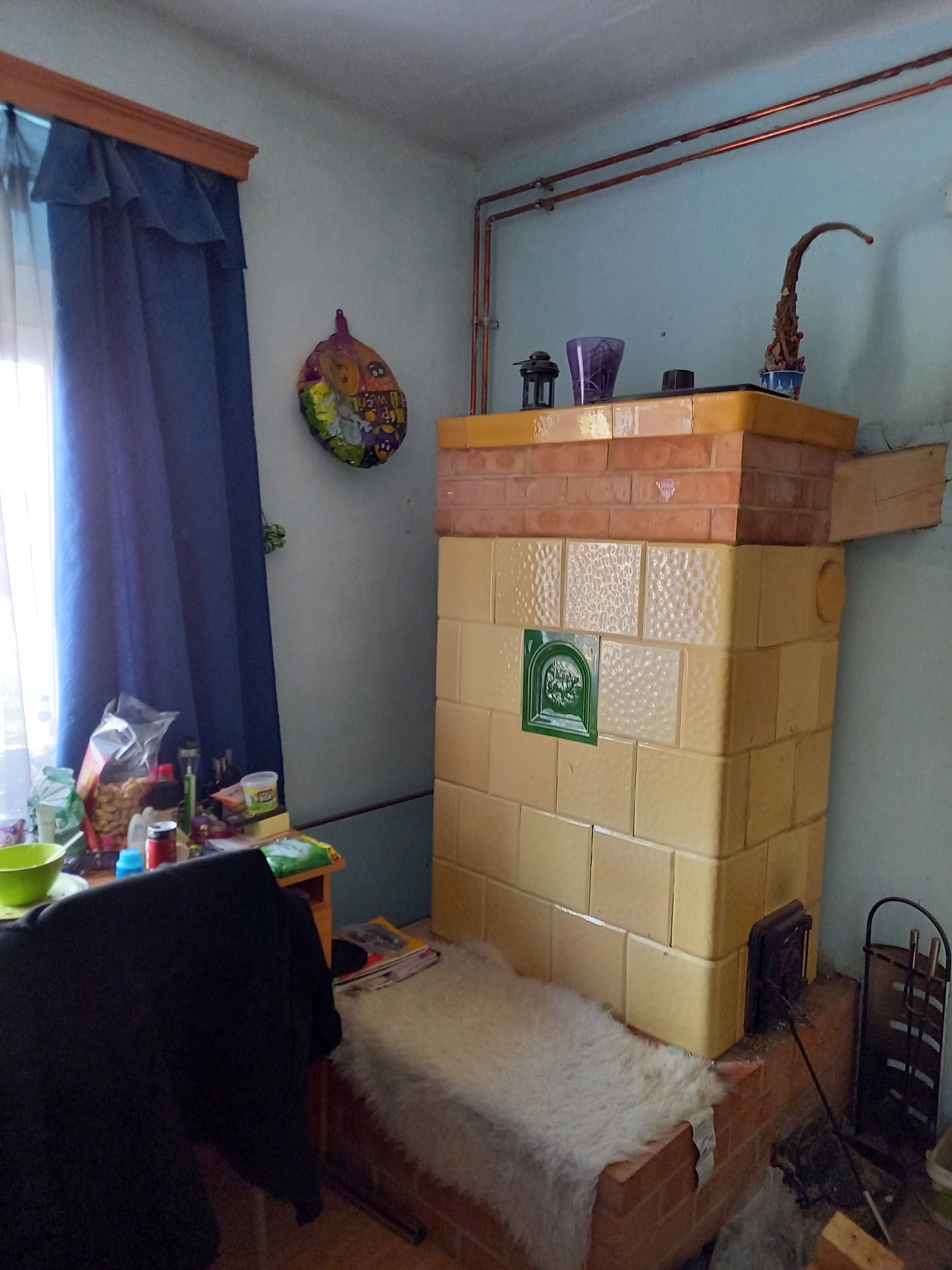 Az épület fűtése 3 db cserépkályhával történik. A konyhában lévő cserépkályha vízteres, erről megy a központi fűtés.