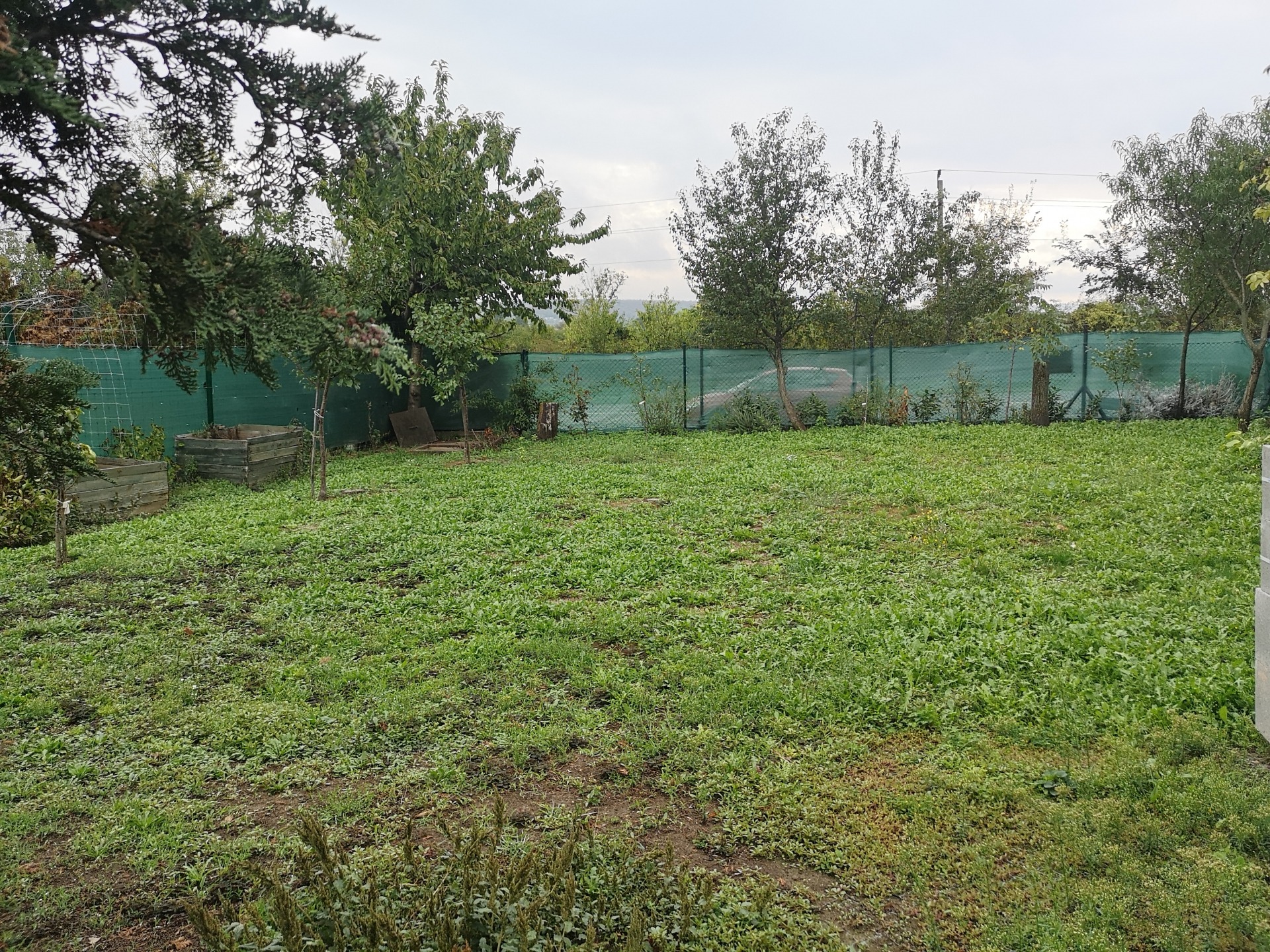 A telek 528 m2-es, gondozott, dísznövényekkel, gyümölcsfákkal beültetett, teljesen körbe kerített, öntözőrendszer ki van építve.