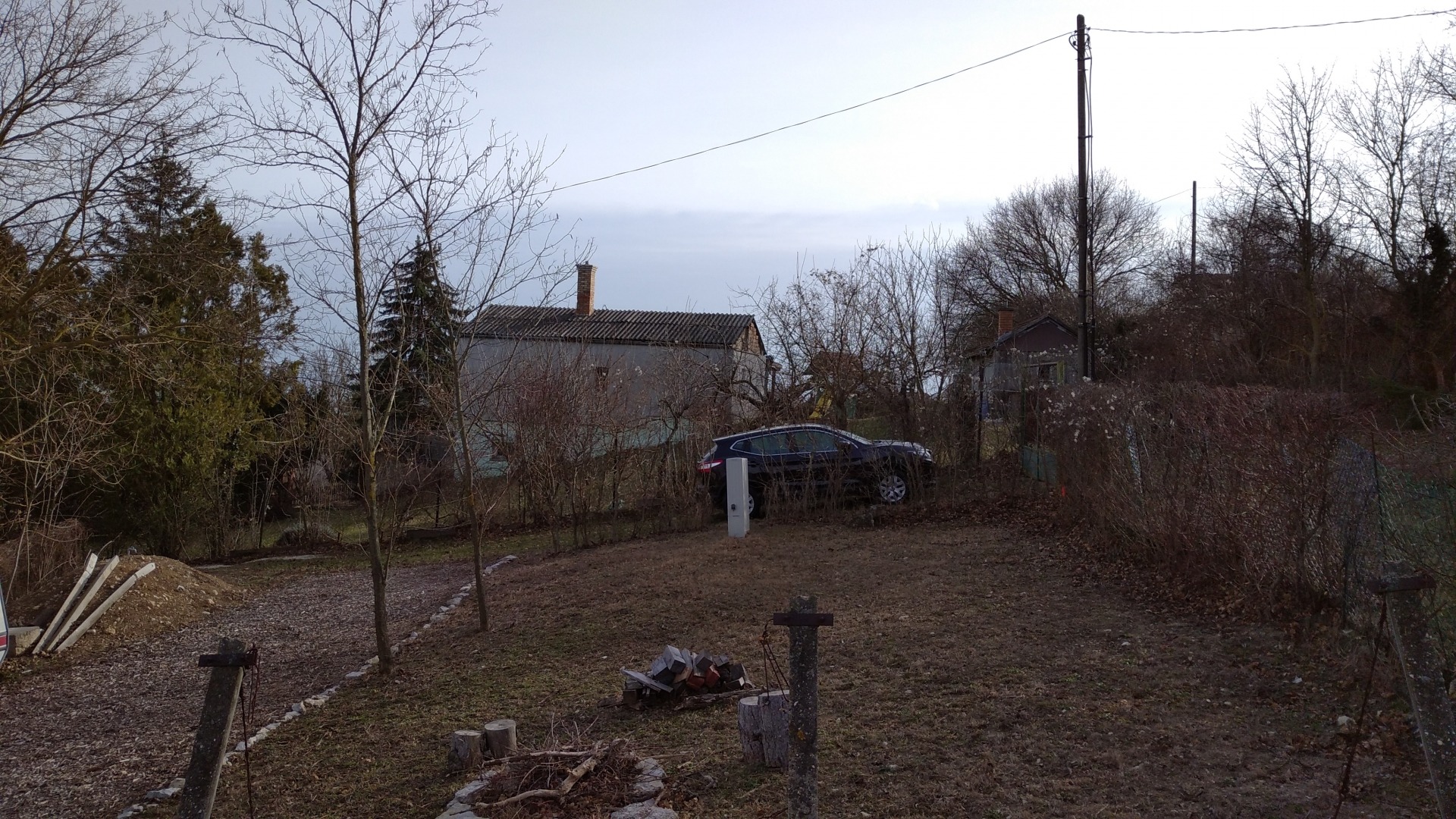 A telek két oldalról kerített, elől, és hátul nincs kerítés.