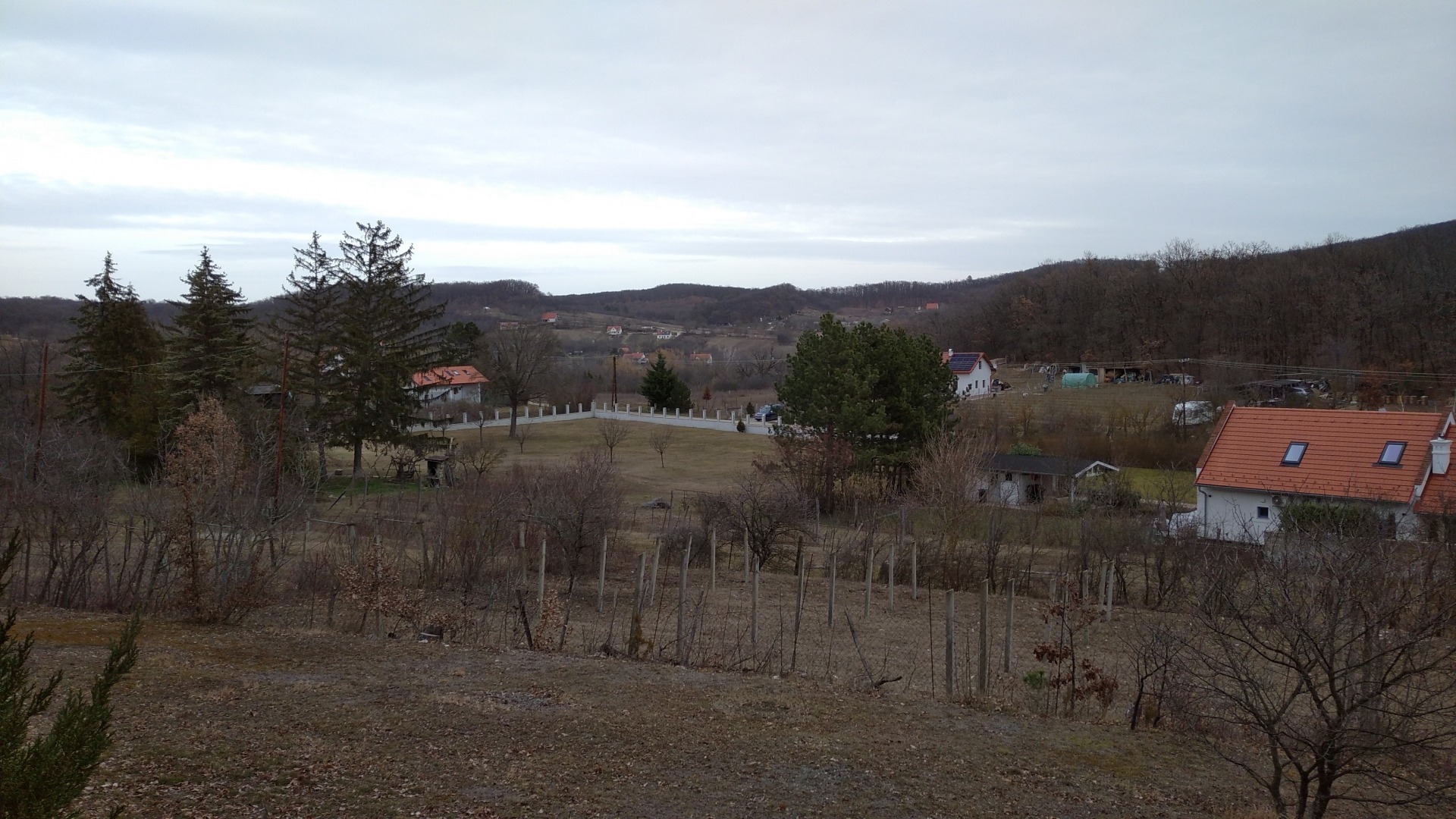 A telken dió, szilva, és almafák találhatók.