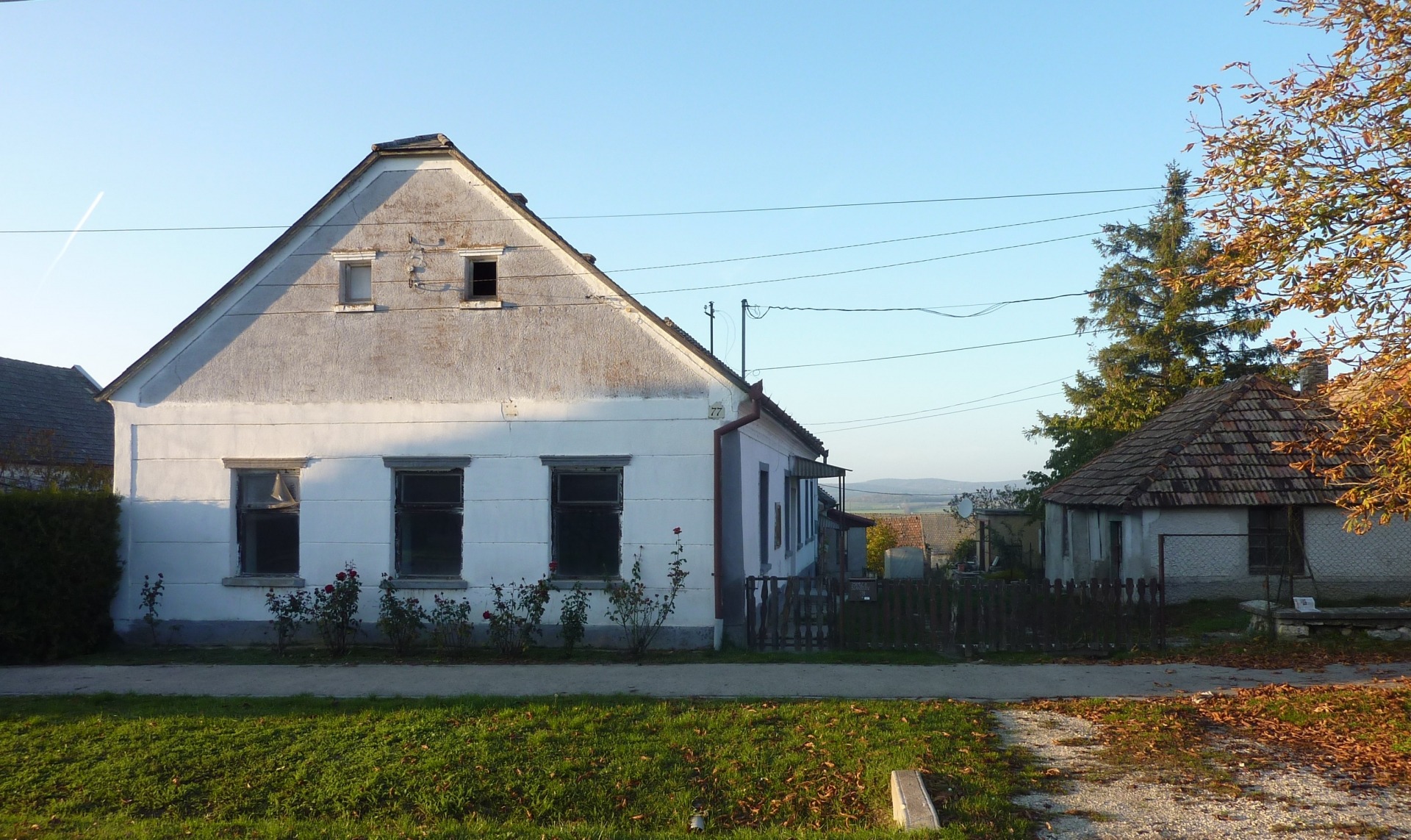 A telek teljes közműellátottsággal rendelkezik: 3 fázisú villany, víz, gáz és csatorna is bevezetésre került, külön mérőkkel. A hátsó lakrészben egy jó állapotú, működő cserépkályha található. A telek hátsó része művelésre is alkalmas, ahonnan szép panoráma nyílik a Balaton-felvidék dombjaira.