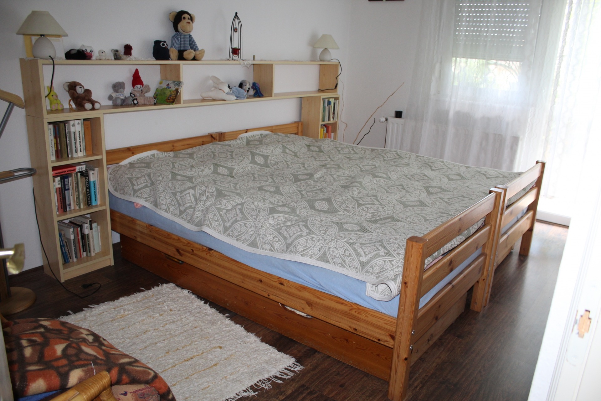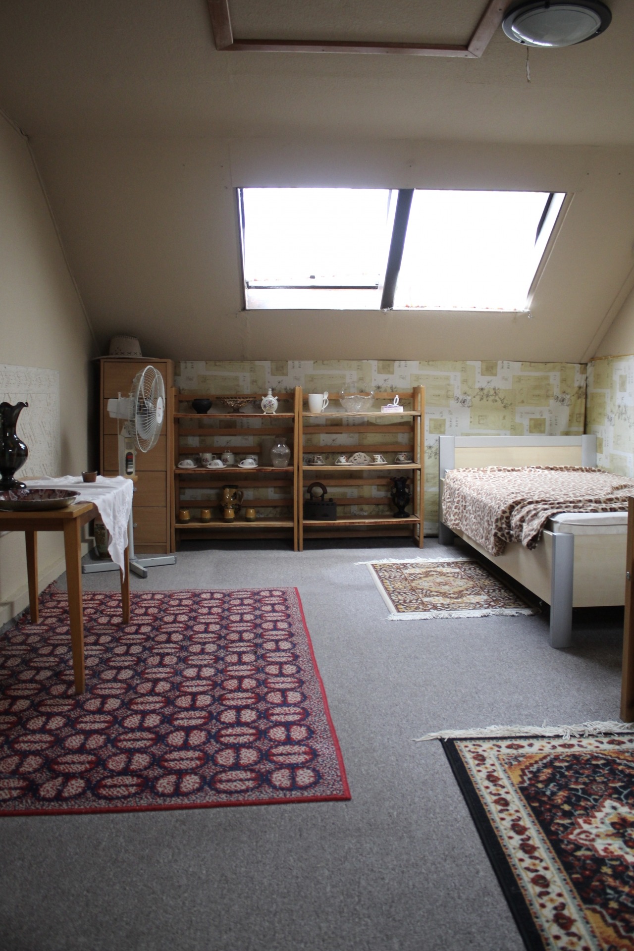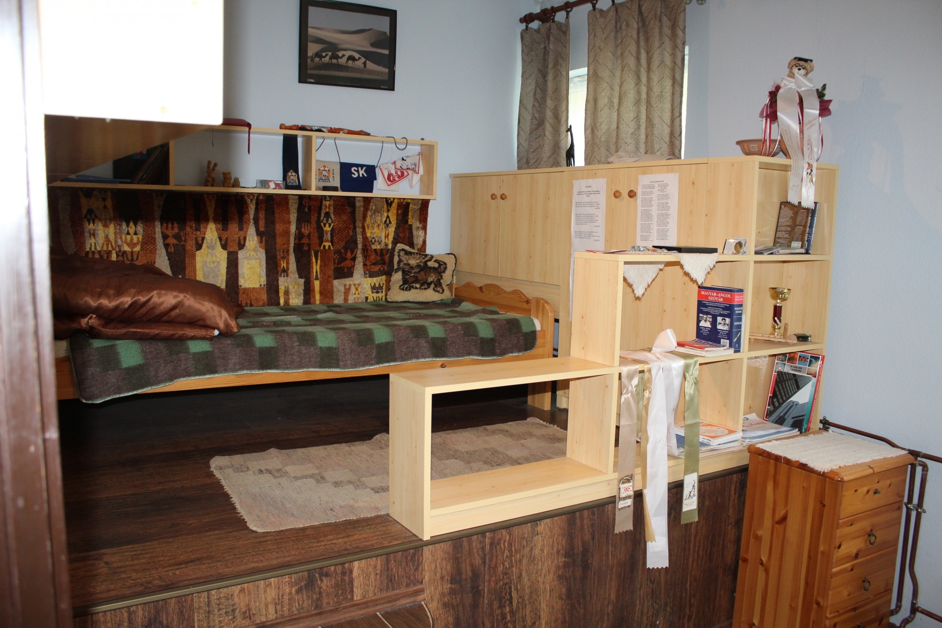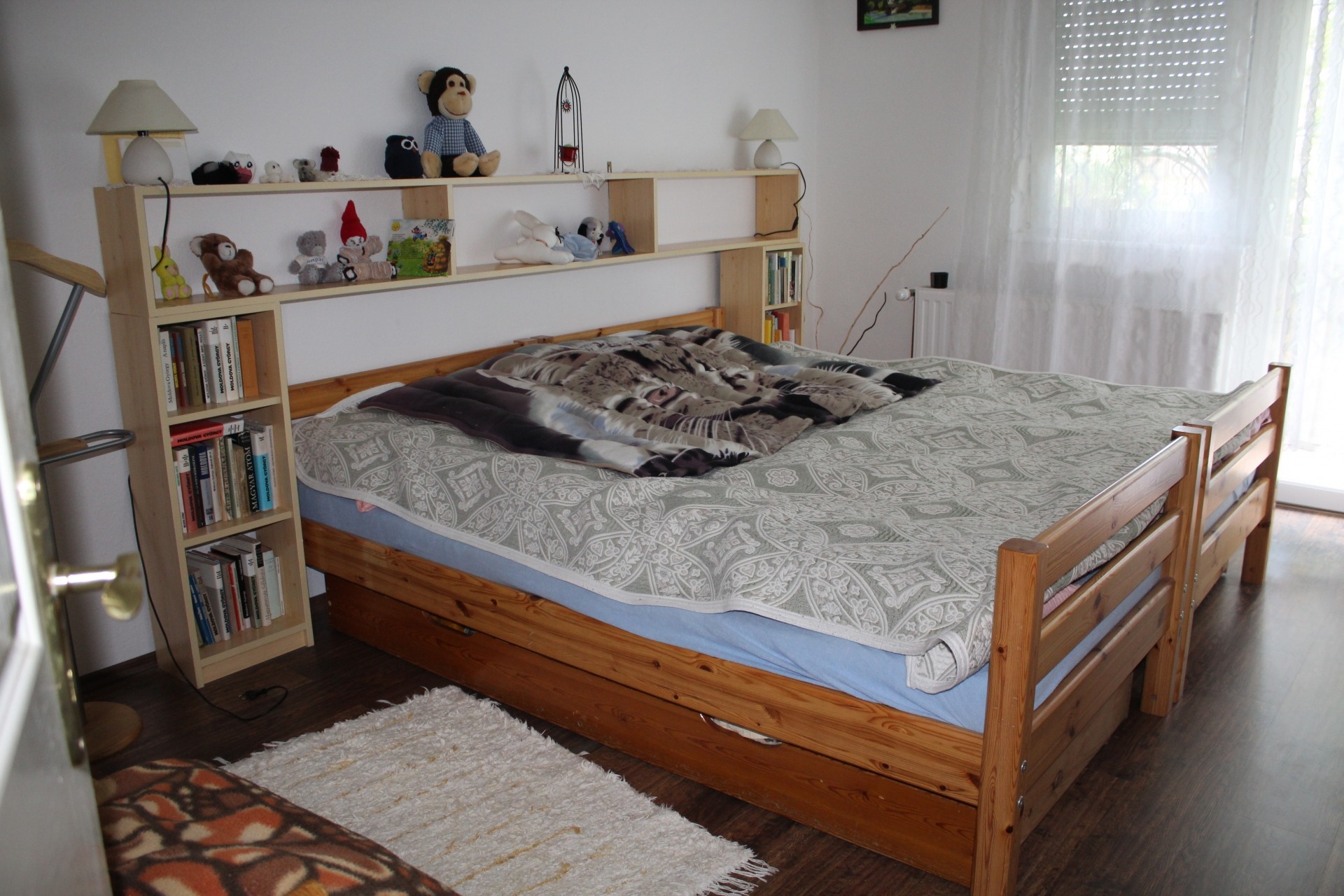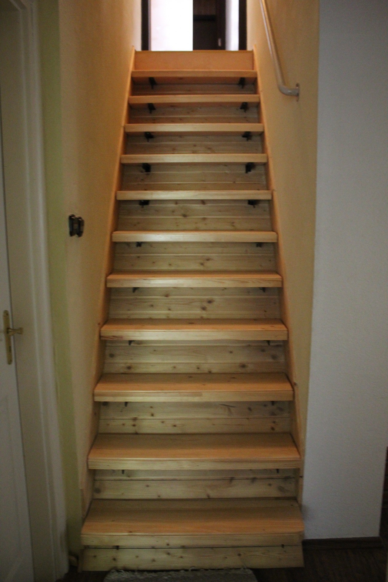 Az emeleten 3 szoba, egy nappali, egy kis főzősarok, a fürdő, és a külön wc mellett az oldalsó tető, és a falak által határolt térben tárolók kerültek kialakításra.