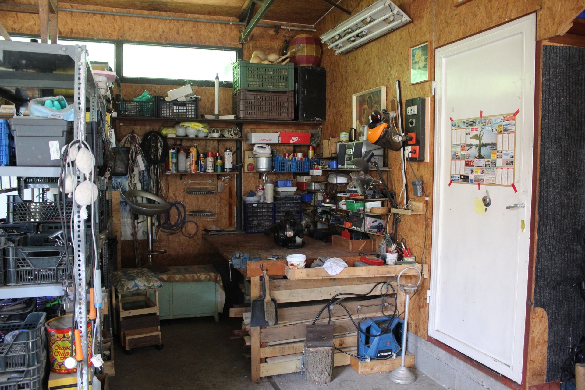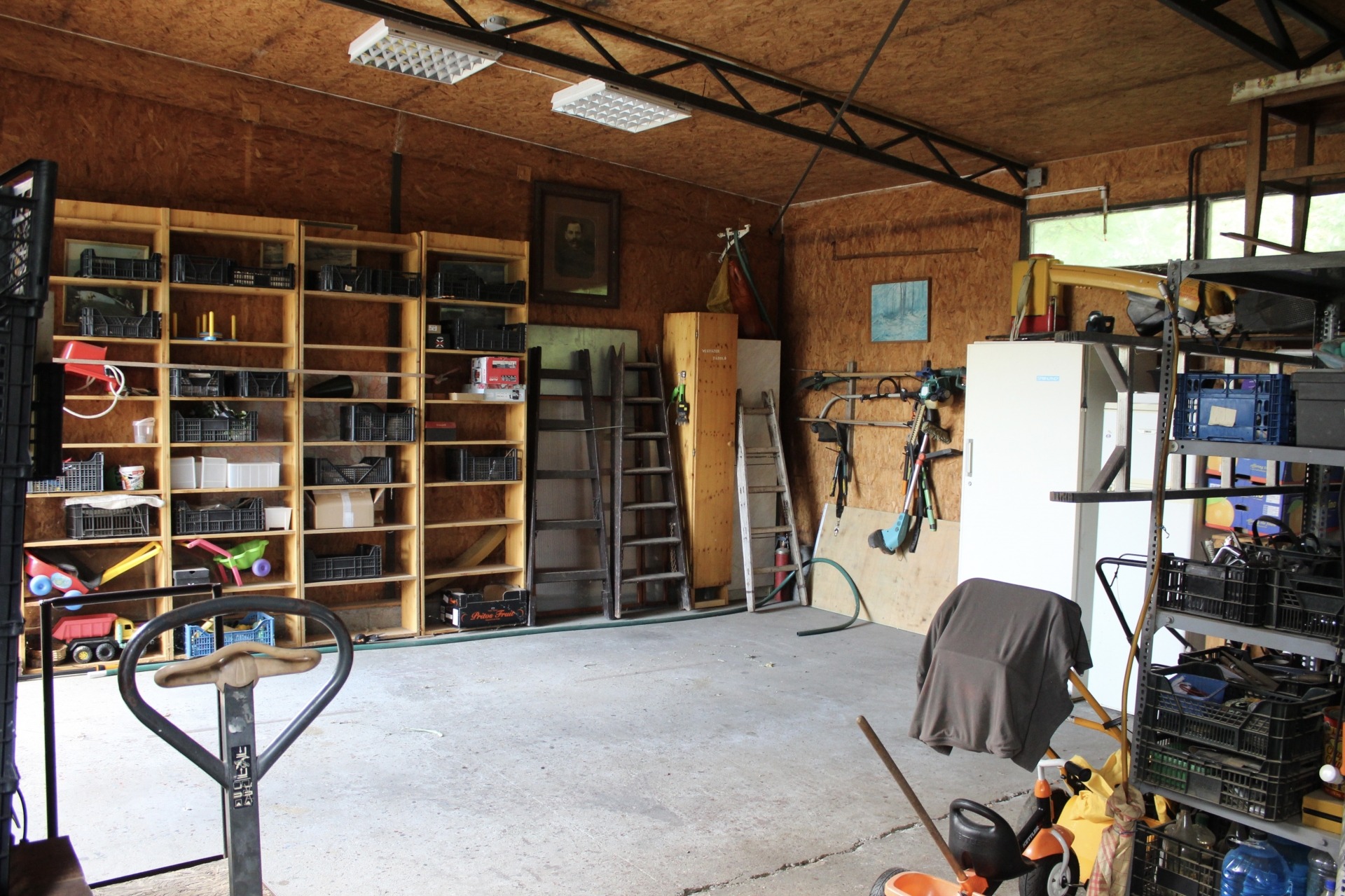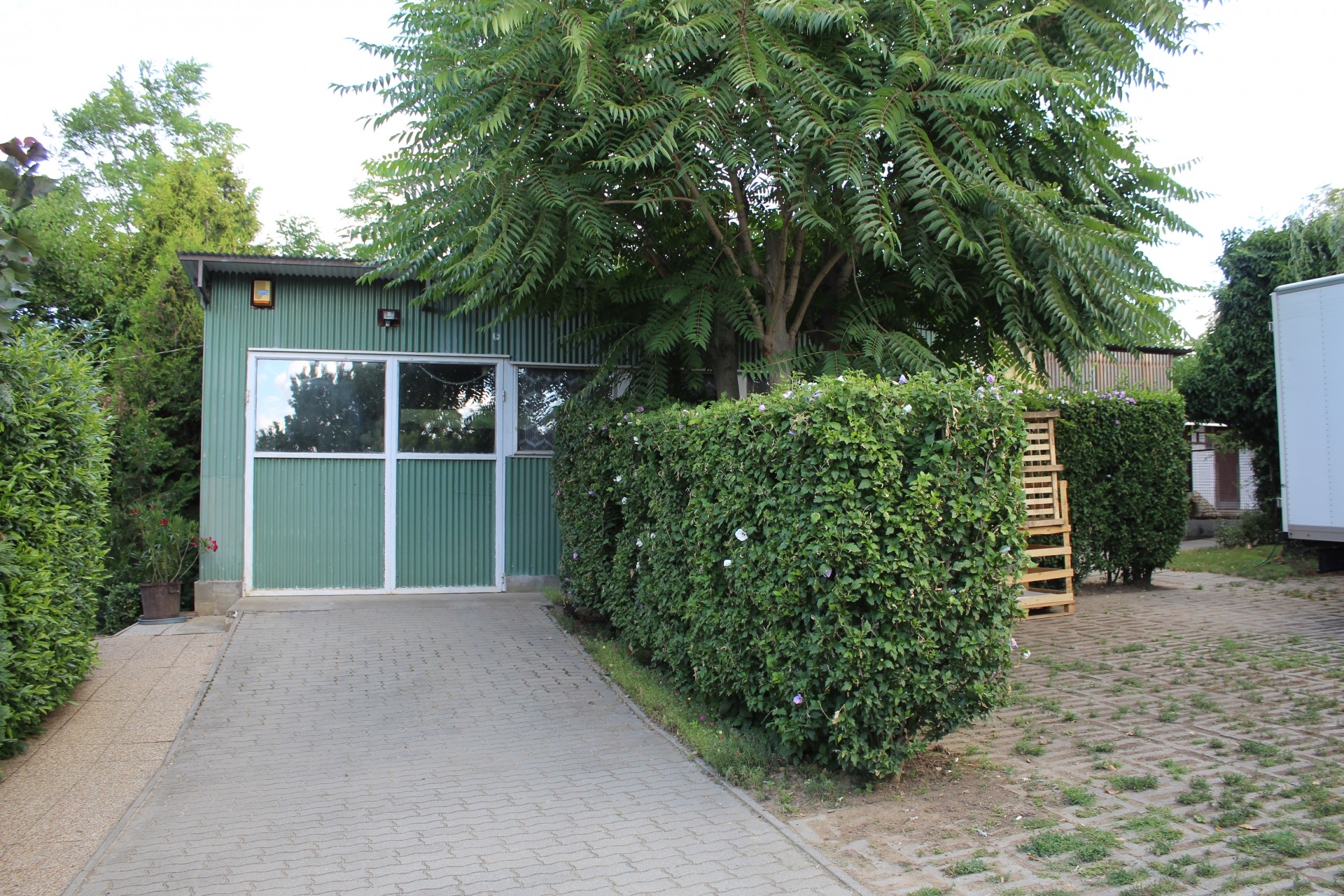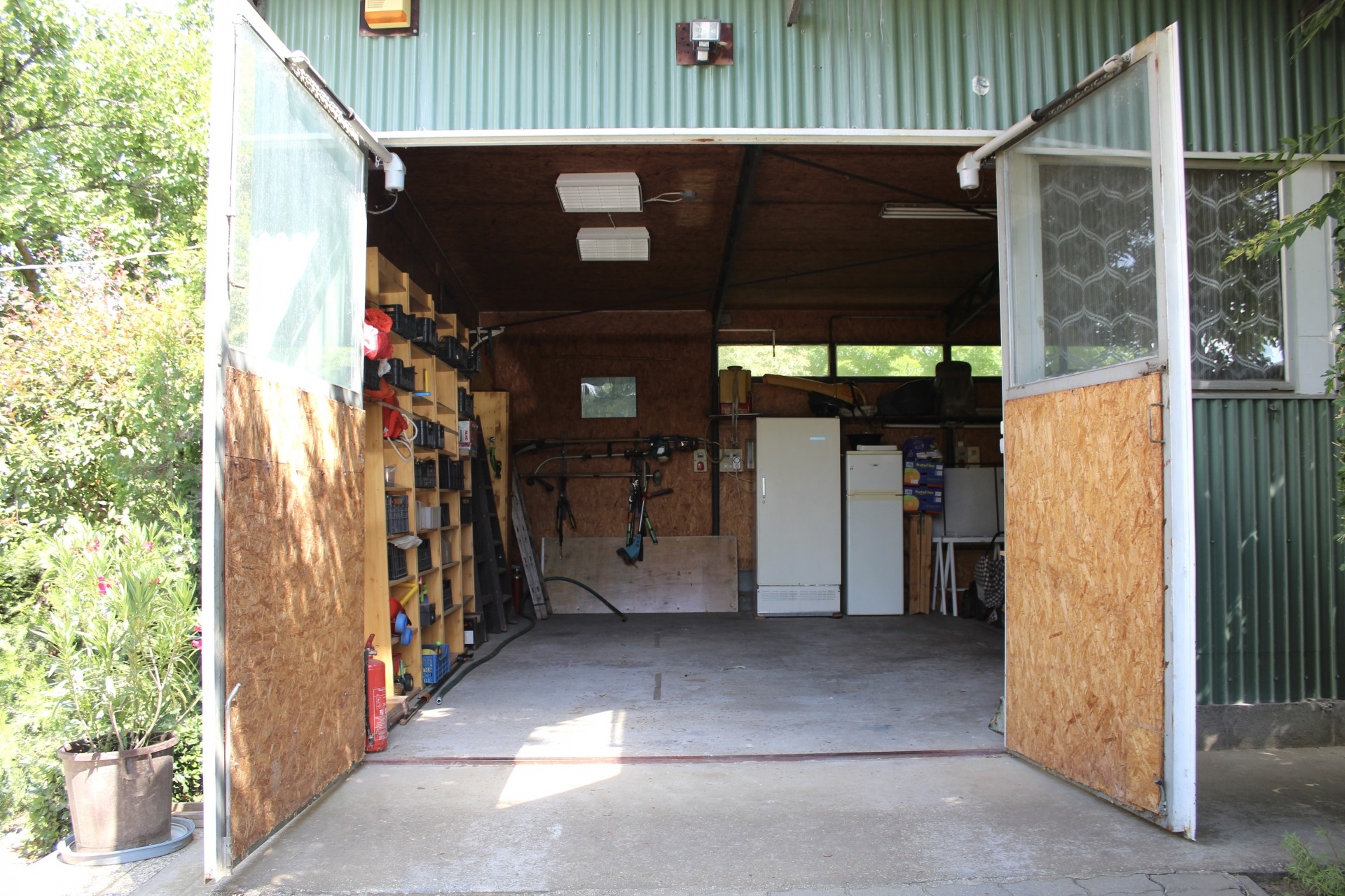 A telken egy kb. 60nm-es duplagarázsos könnyűszerkezetes, szigetelt melléképület szintén lehetőséget biztosít vállalkozásra, gumis műhely, kerékpár javító műhely, vagy bármilyen lakatos tevékenységre alkalmas, az ingatlanban 3x20A erősségű hálózat került telepítésre. A műhely-garázs előtt egy kb. 60nm-es burkolt terület került kialakításra.