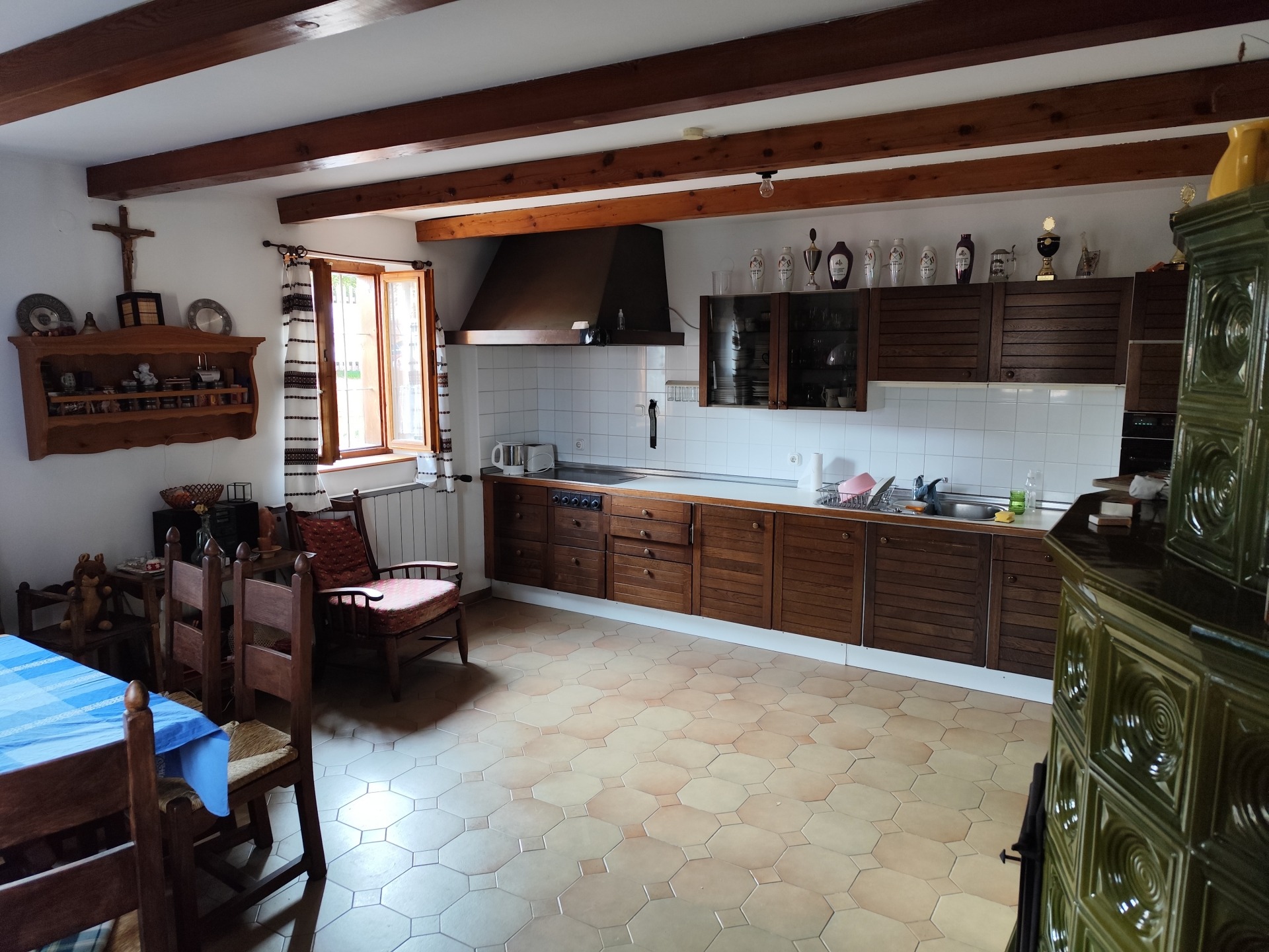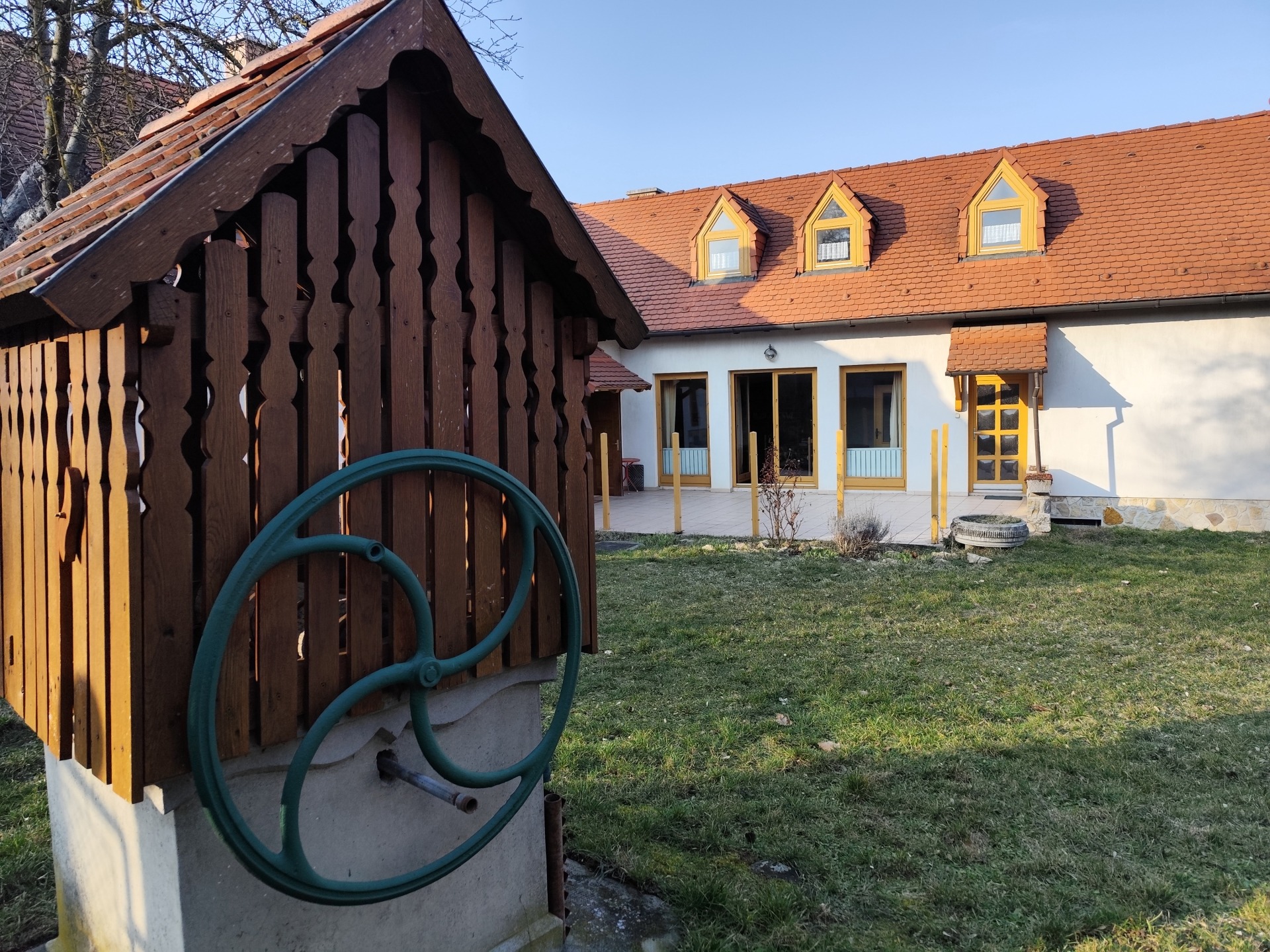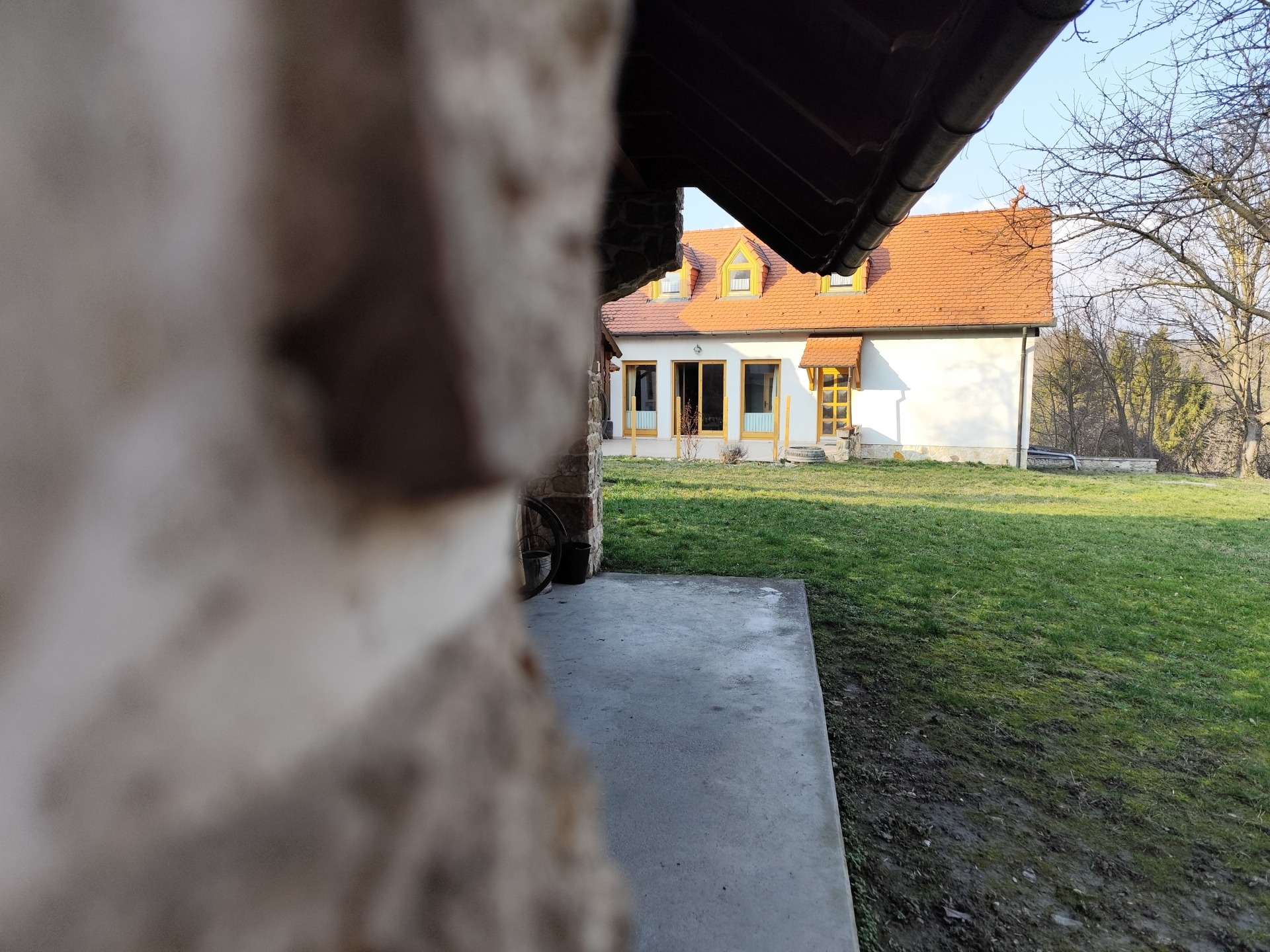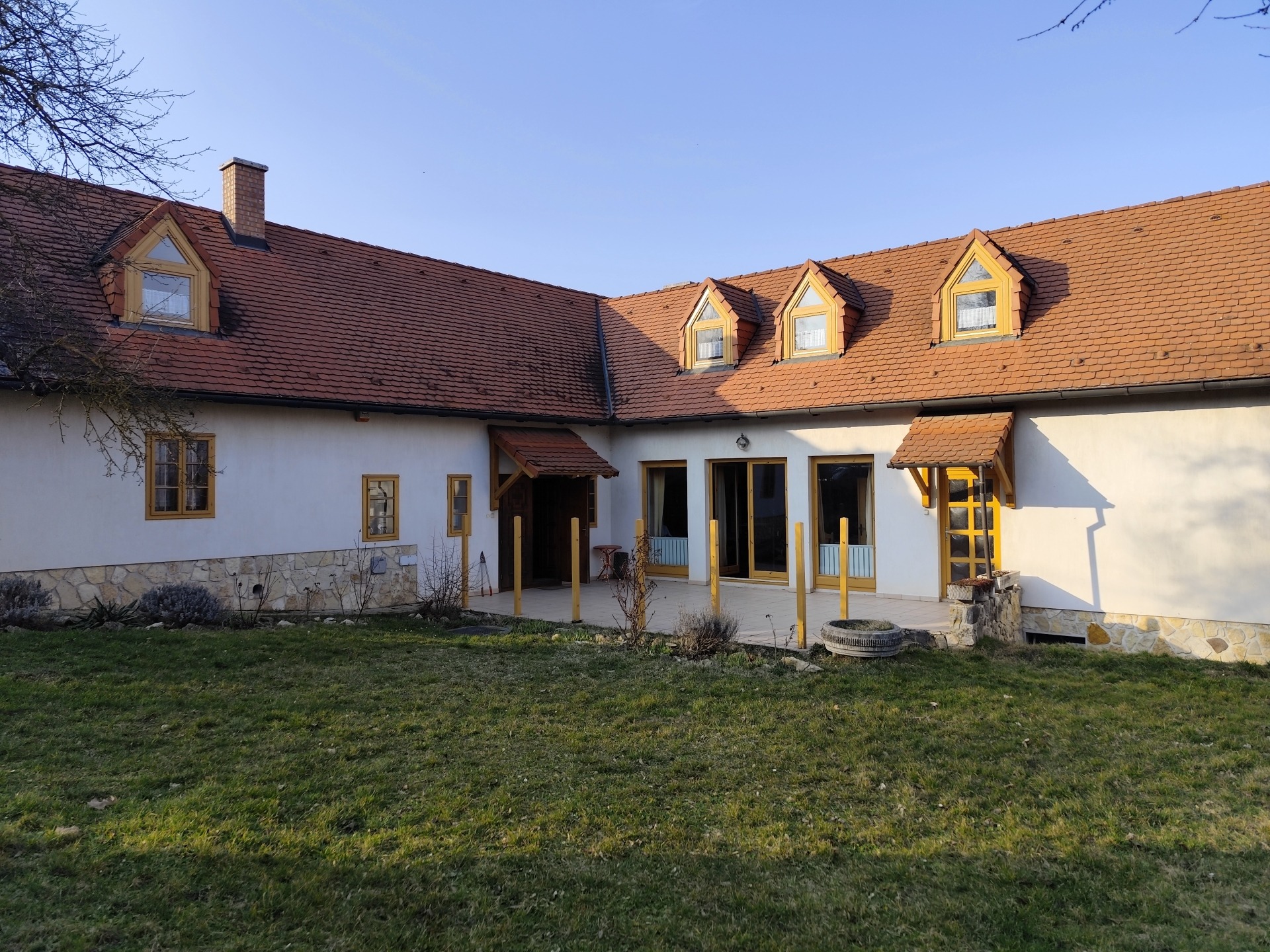 A masszív, 36 cm-es tégla falazat, a szigetelt fa nyílászárók és a hódfarkú cserépfedés időtálló minőséget képviselnek.