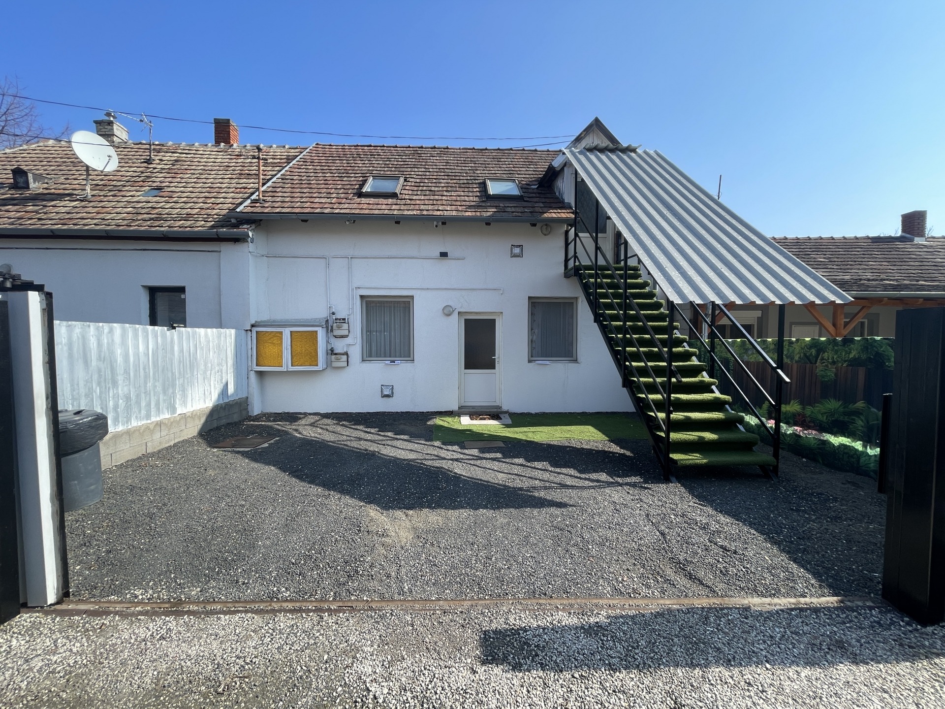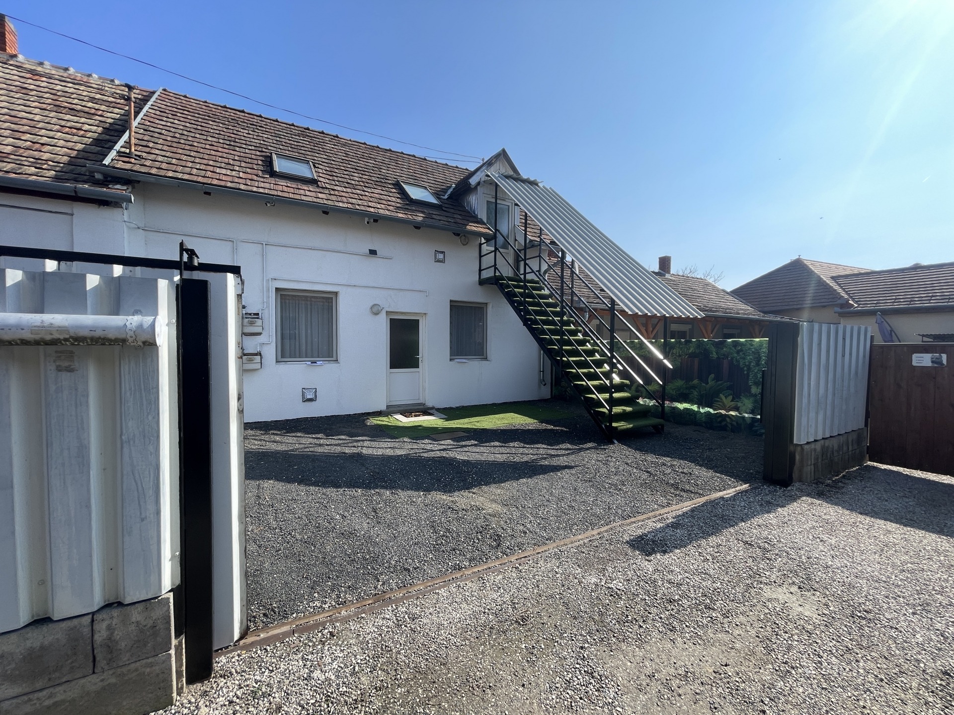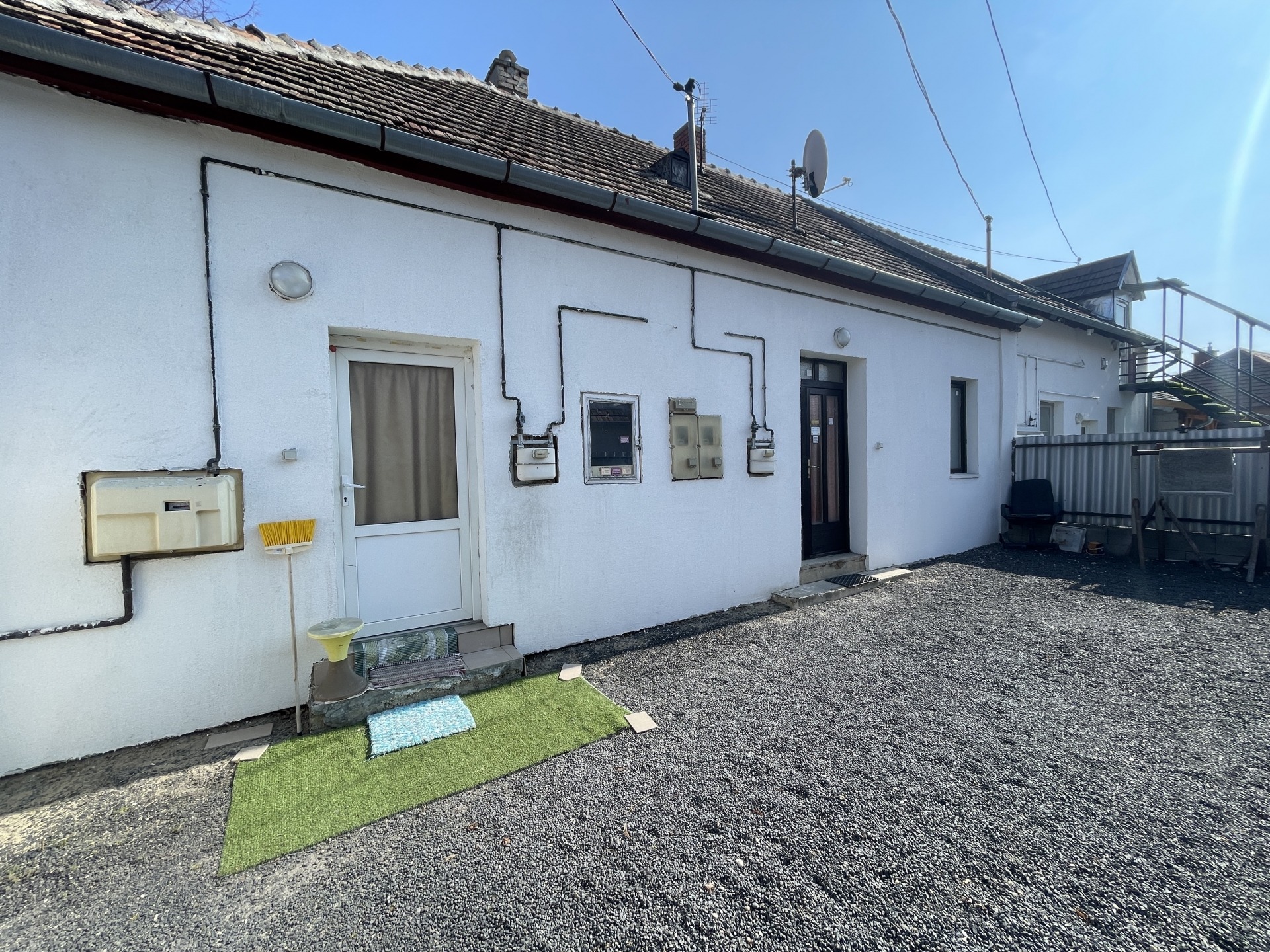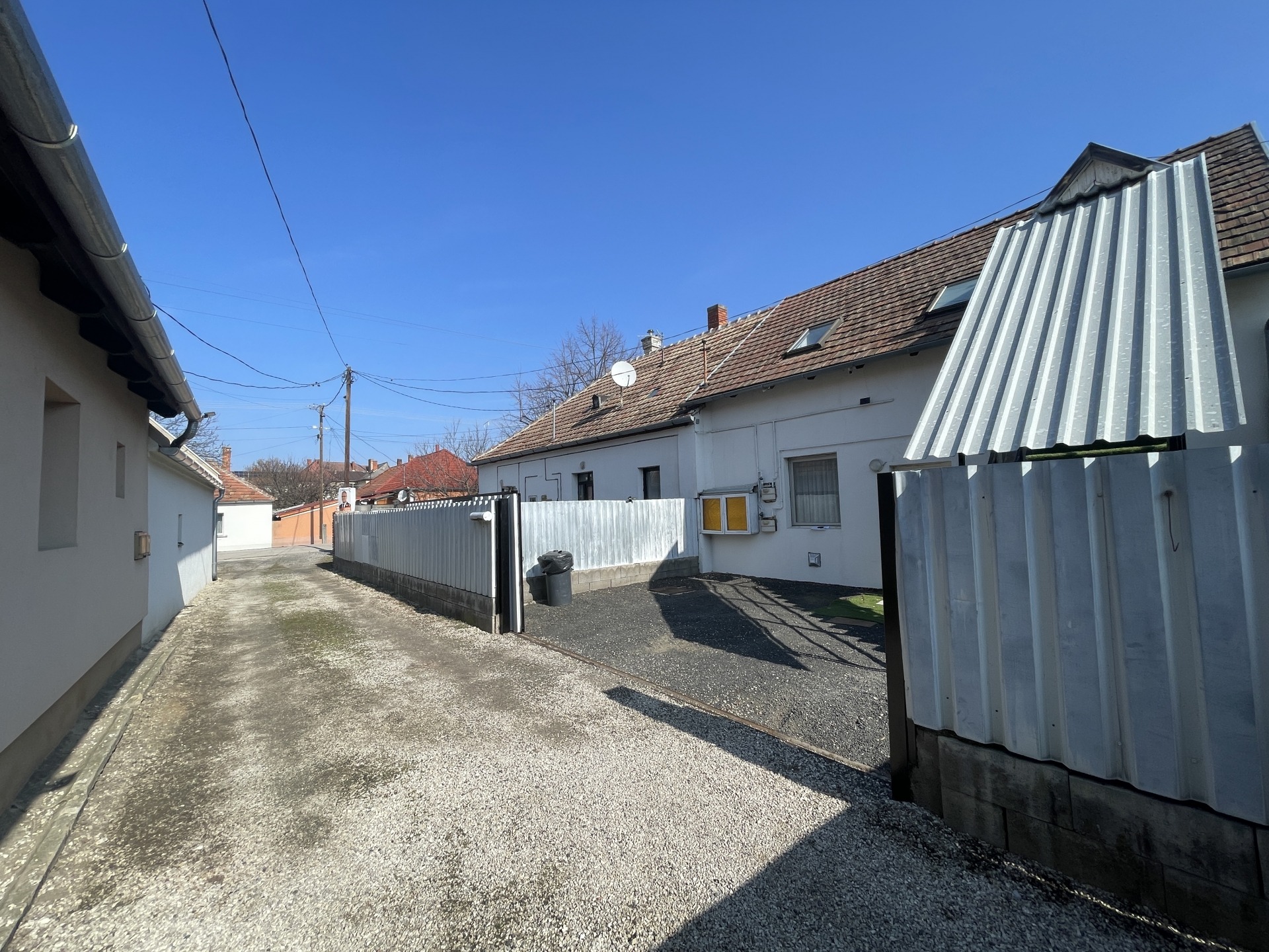 Az ingatlan egyik legnagyobb előnye, hogy minden lakrész külön almérőkkel rendelkezik, így saját víz-, villany- és gázórával működik. Az udvar rendezett, zúzott kő burkolattal ellátott, kerített és jól karbantartott.