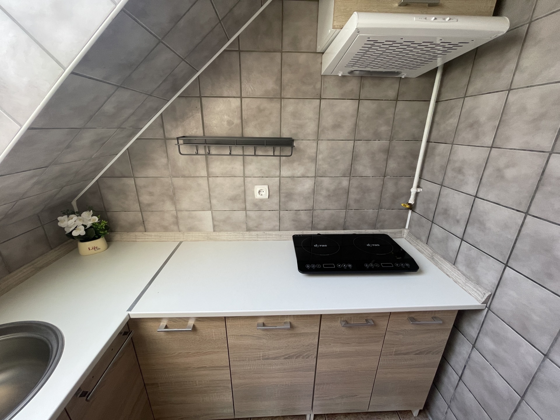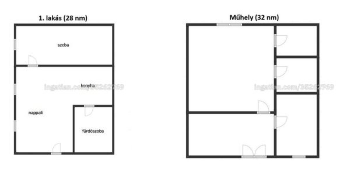 Az ingatlanportfólió két különálló épületből áll. Az egyik egy 1960-as években épült, 28 m²-es lakóház, amely vegyes falazatú (tégla és kő), cserépfedéses tetővel rendelkezik. A ház egy 194 m²-es, körbekerített telken található. A lakásban nappali, konyha, hálószoba és fürdőszoba-WC került kialakításra. Fűtéséről konvektor gondoskodik, a melegvizet villanybojler biztosítja.