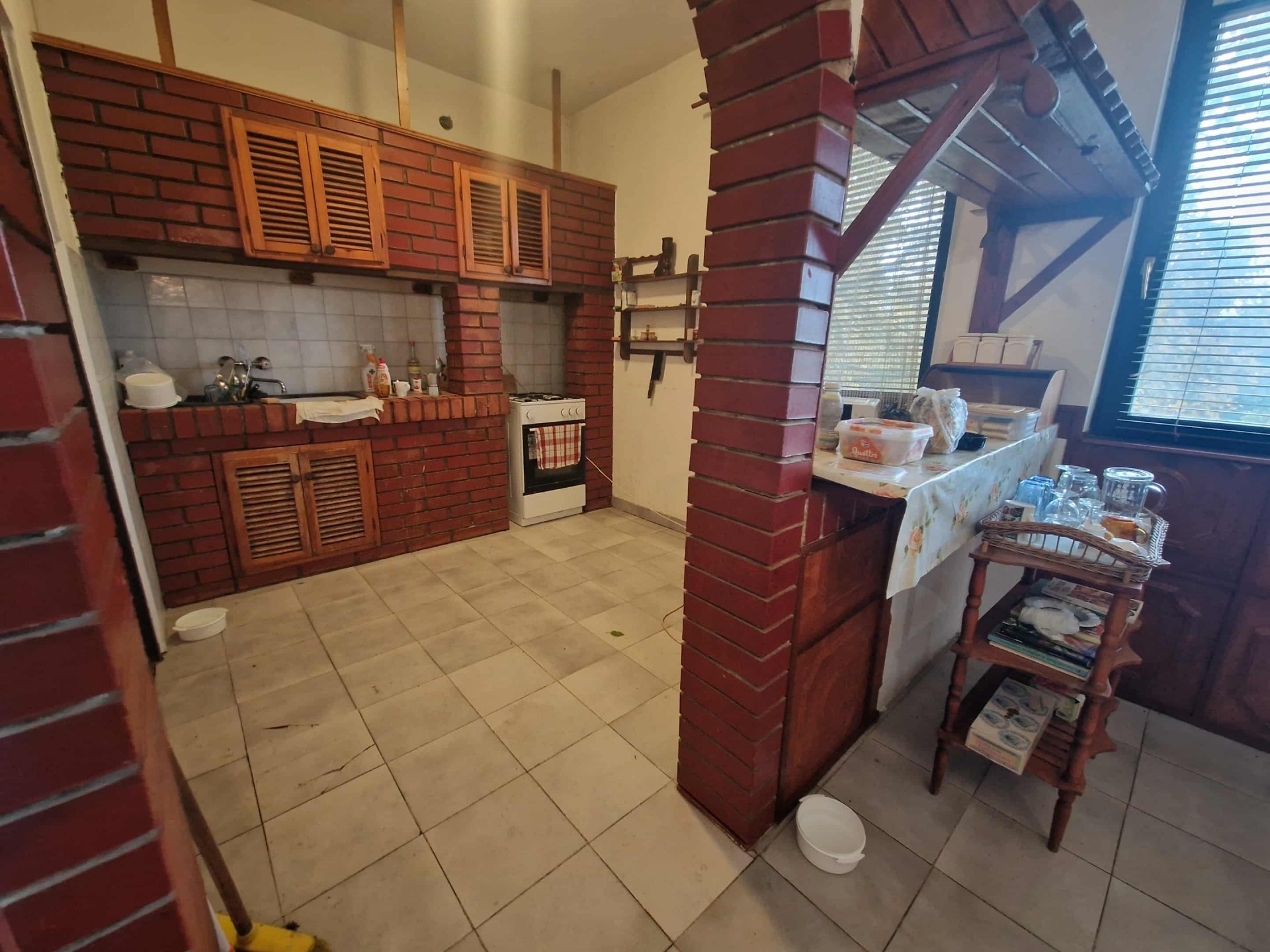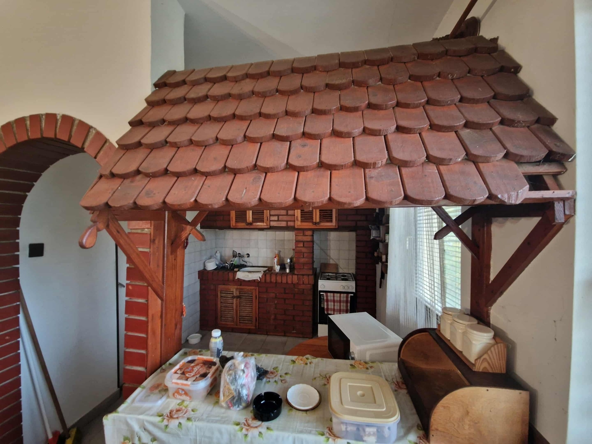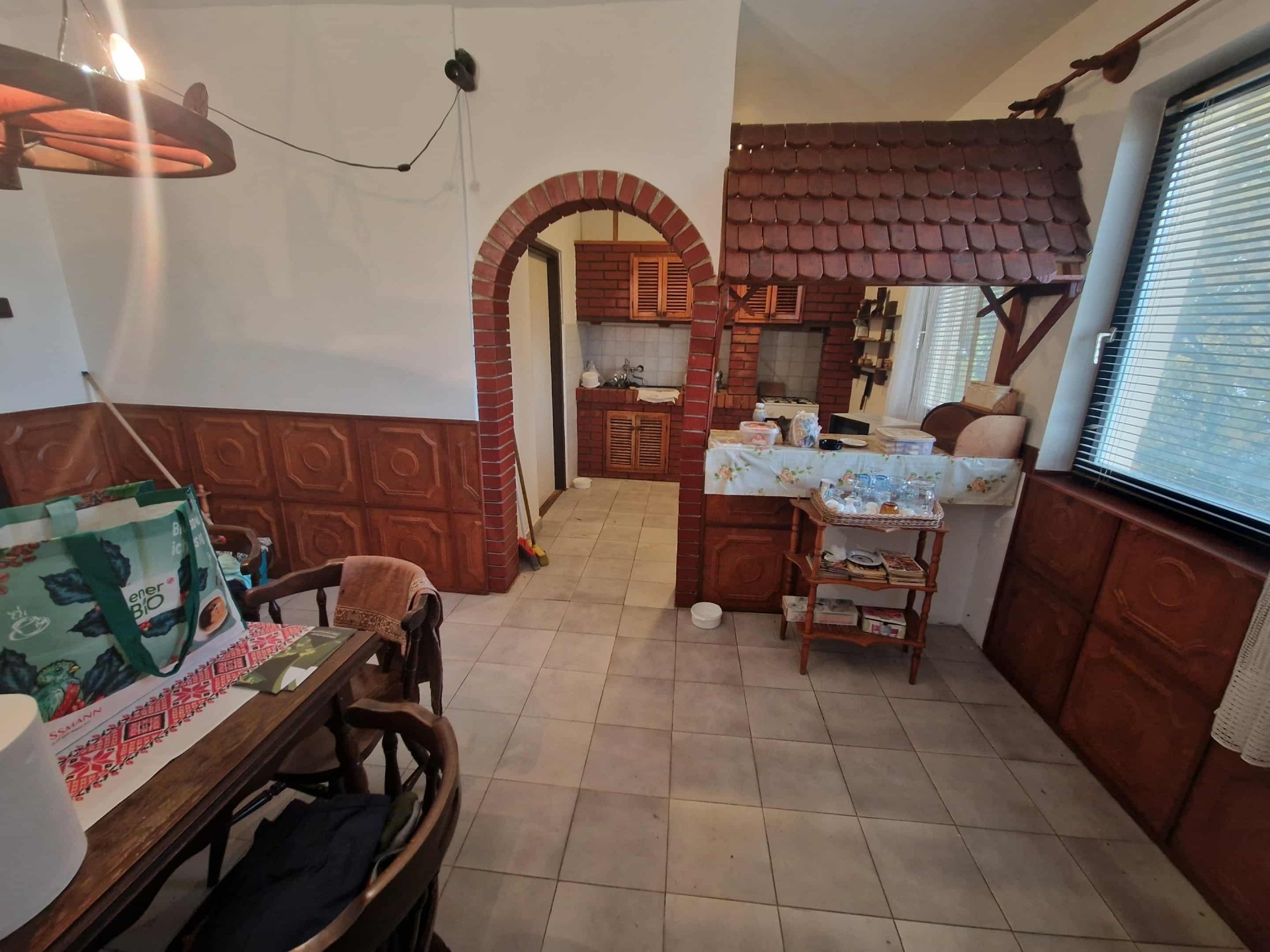 Beépített, egyedi konyha hangulatos cseréptetős tálalóval és tágas étkezővel