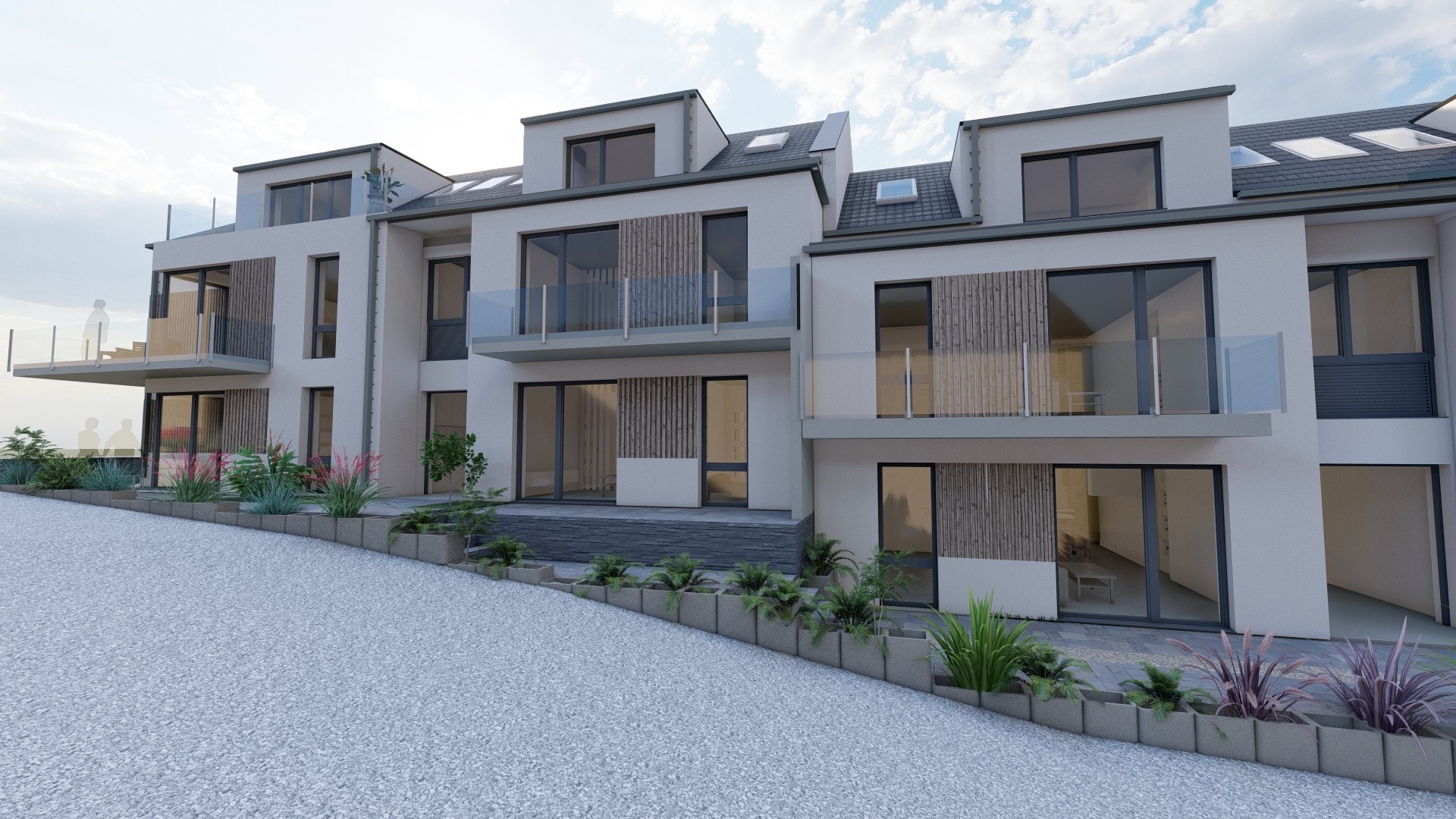 A lakóépületünk két lépcsőházból áll, és különböző méretű lakásokat kínálunk, 47,6 négyzetmétertől 65,4 négyzetméterig. Összesen 10 lakást tervezünk kialakítani, minden lakás terasszal és parkolóhellyel rendelkezik!