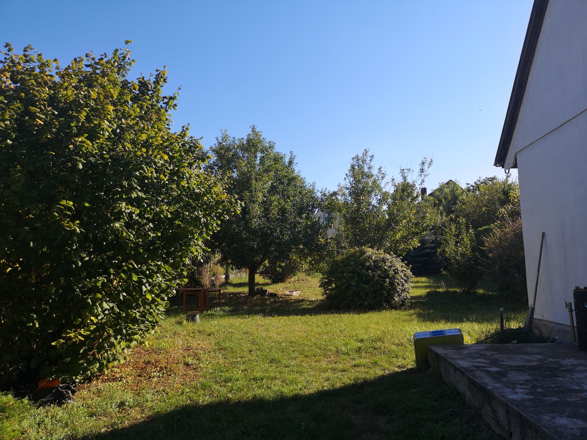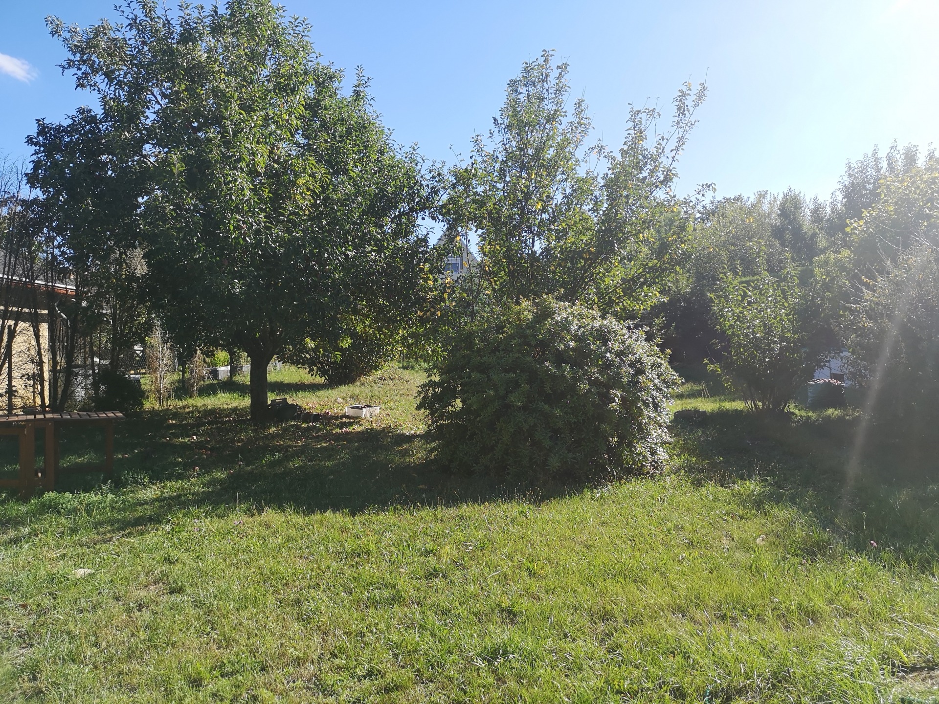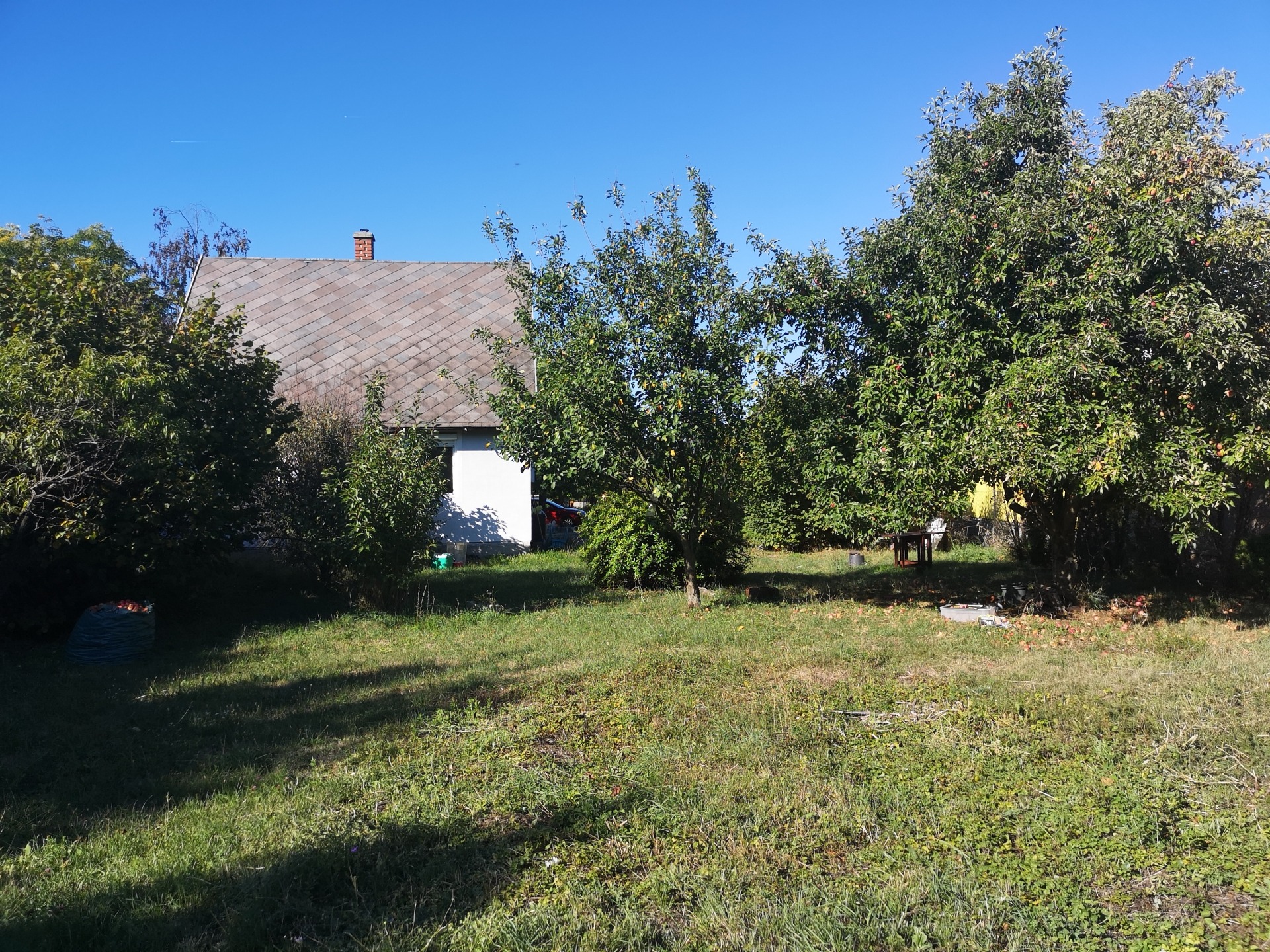 Az udvar 3 oldalról kerítéssel határolt, az utca felől még nincs lekerítve, a terület gyümölcsfákkal, dísznövényekkel beültetett.