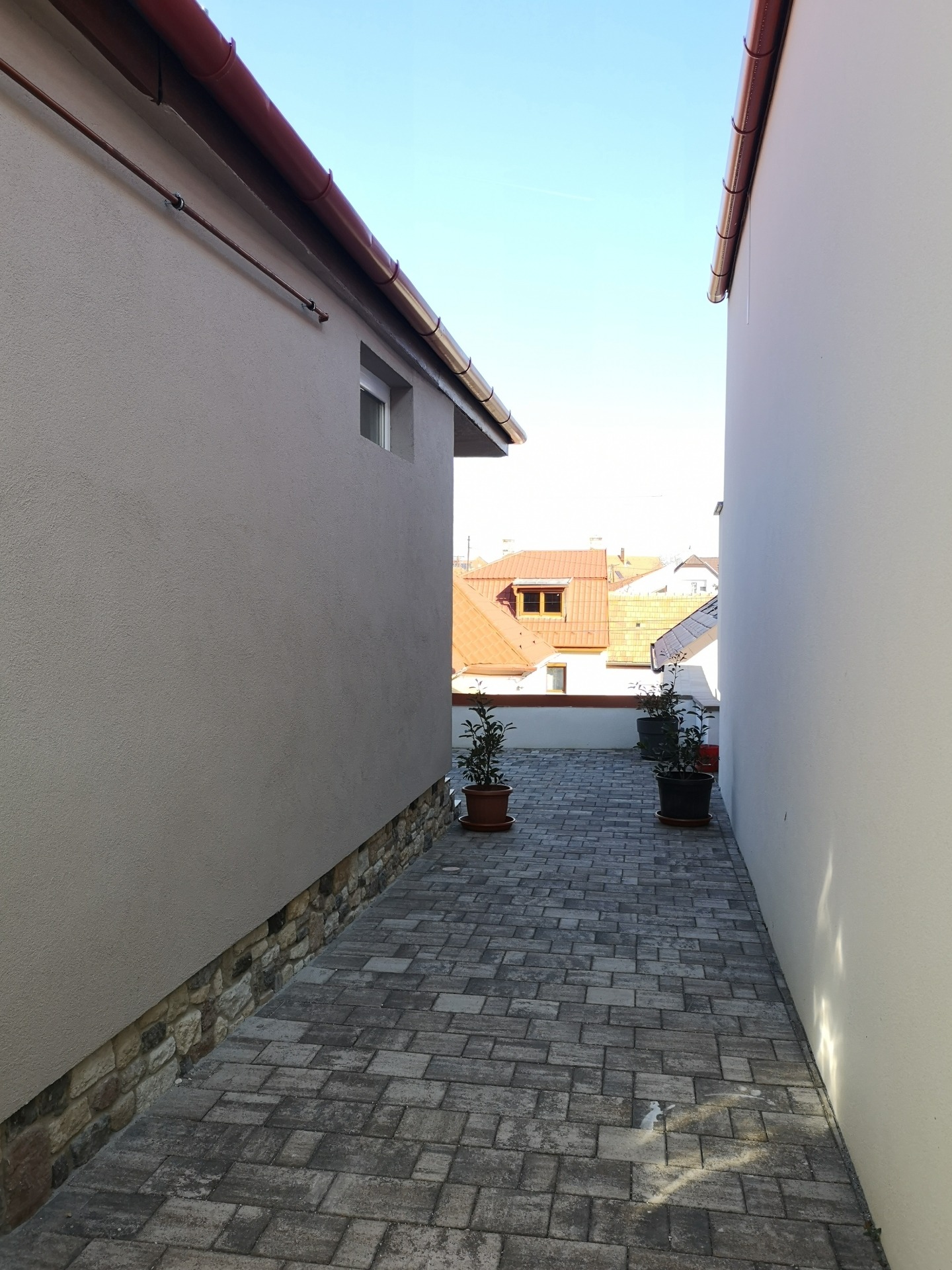 A családi ház teljesen felújított, 70 m²-es földszinti alapterületű, valamint 25 m²-es beépített tetőtérrel rendelkezik. A hozzá tartozó udvar 80 m2-es, térkővel burkolt.