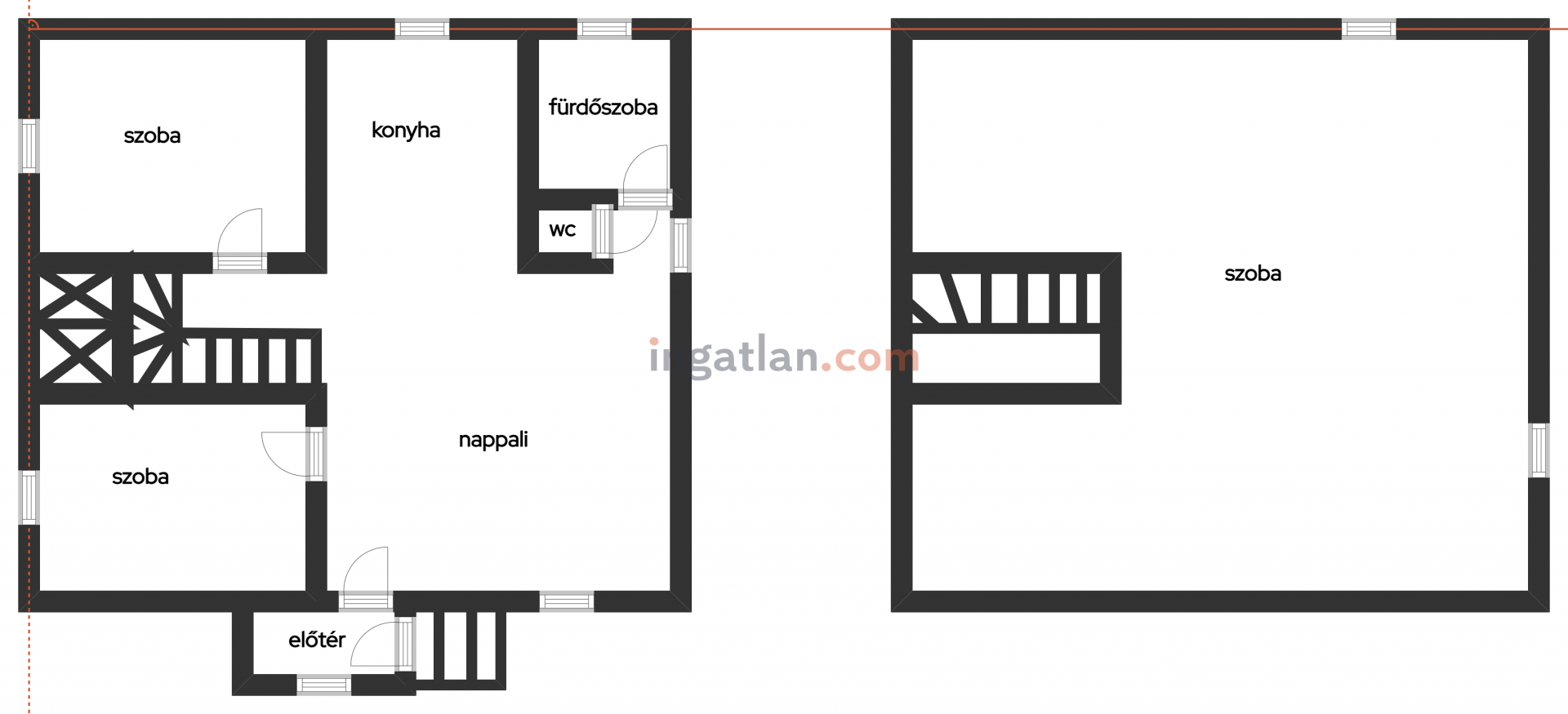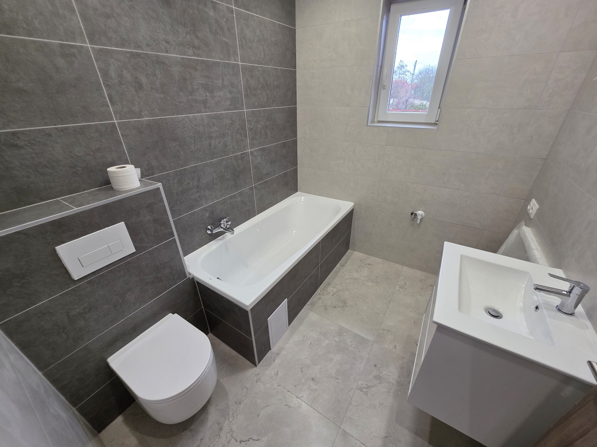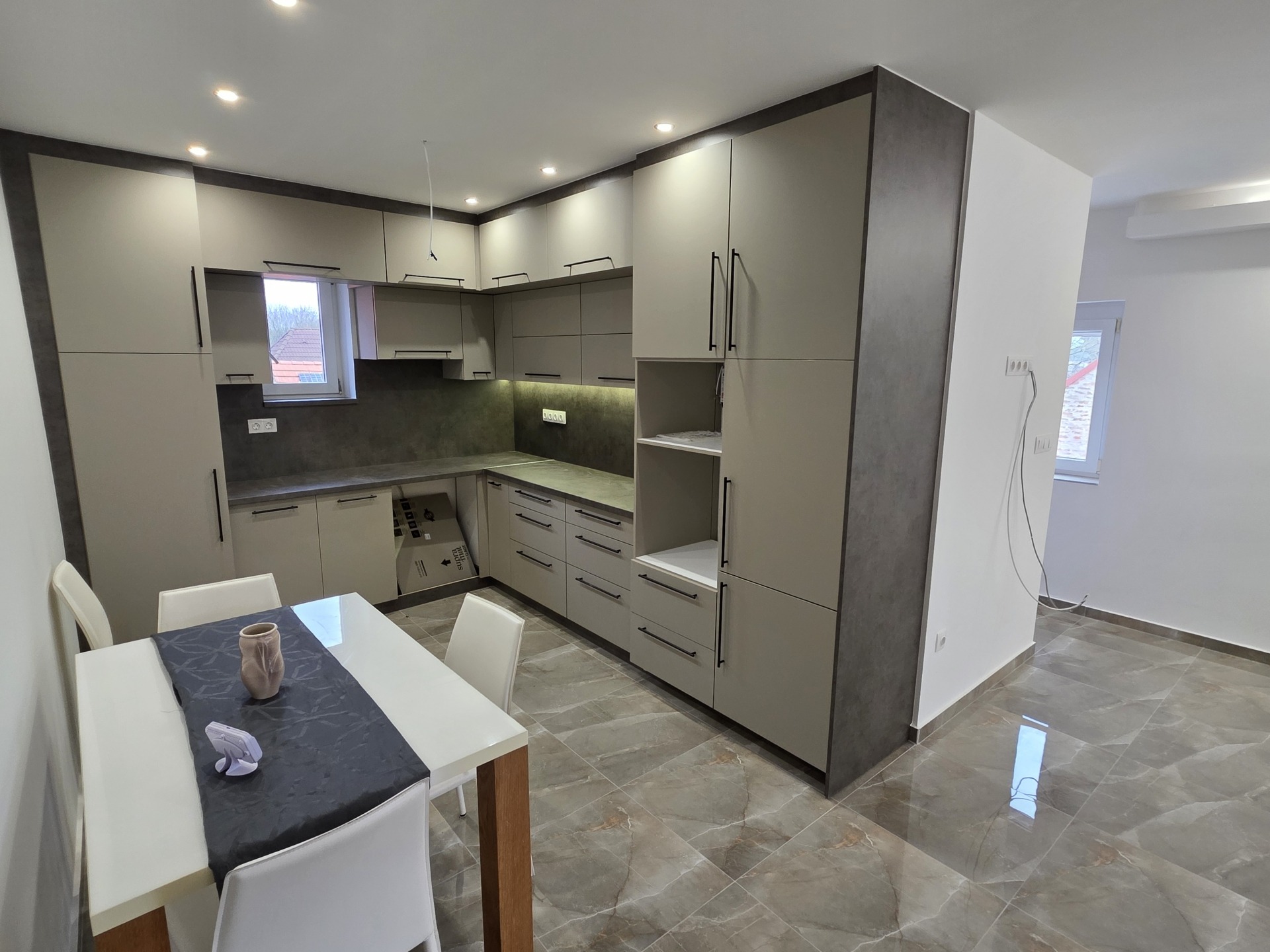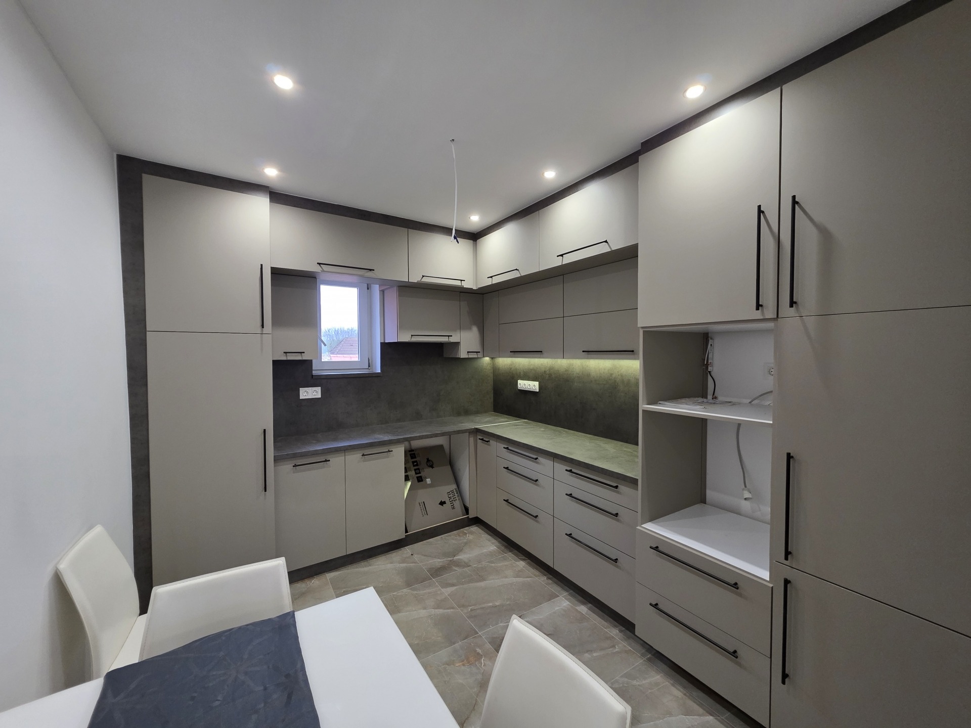 Az ingatlanban 3 szoba, amerikai konyhás nappali, fürdőszoba, előtér, wc került kialakításra.