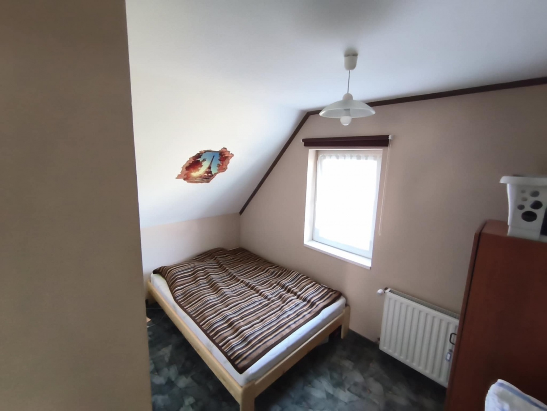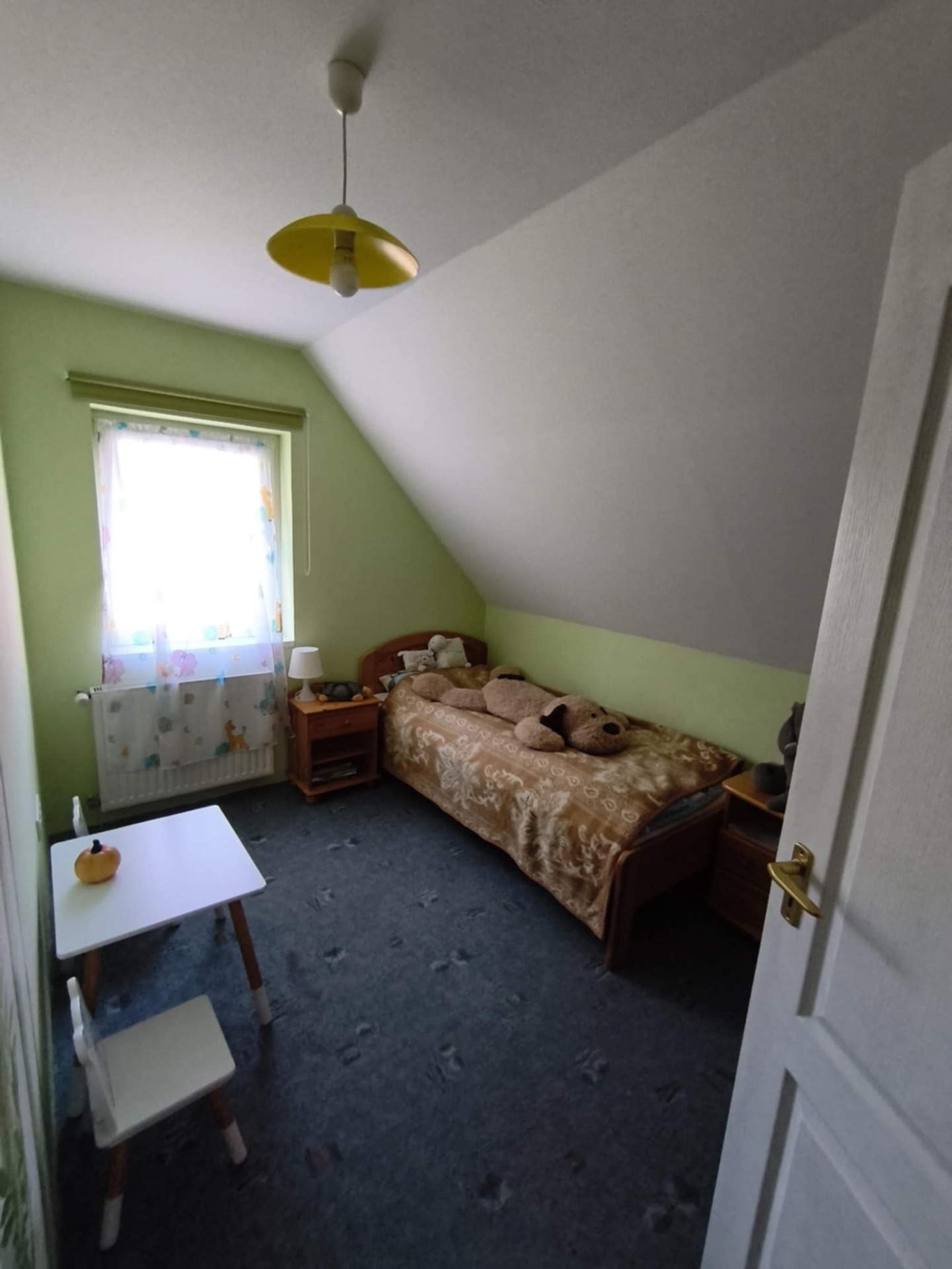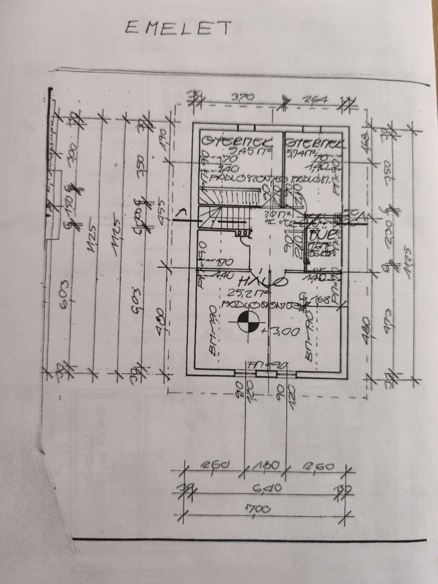 Az emeleten három szoba, és egy félszoba mellett egy zuhanyzós fürdőszoba kapott helyet.