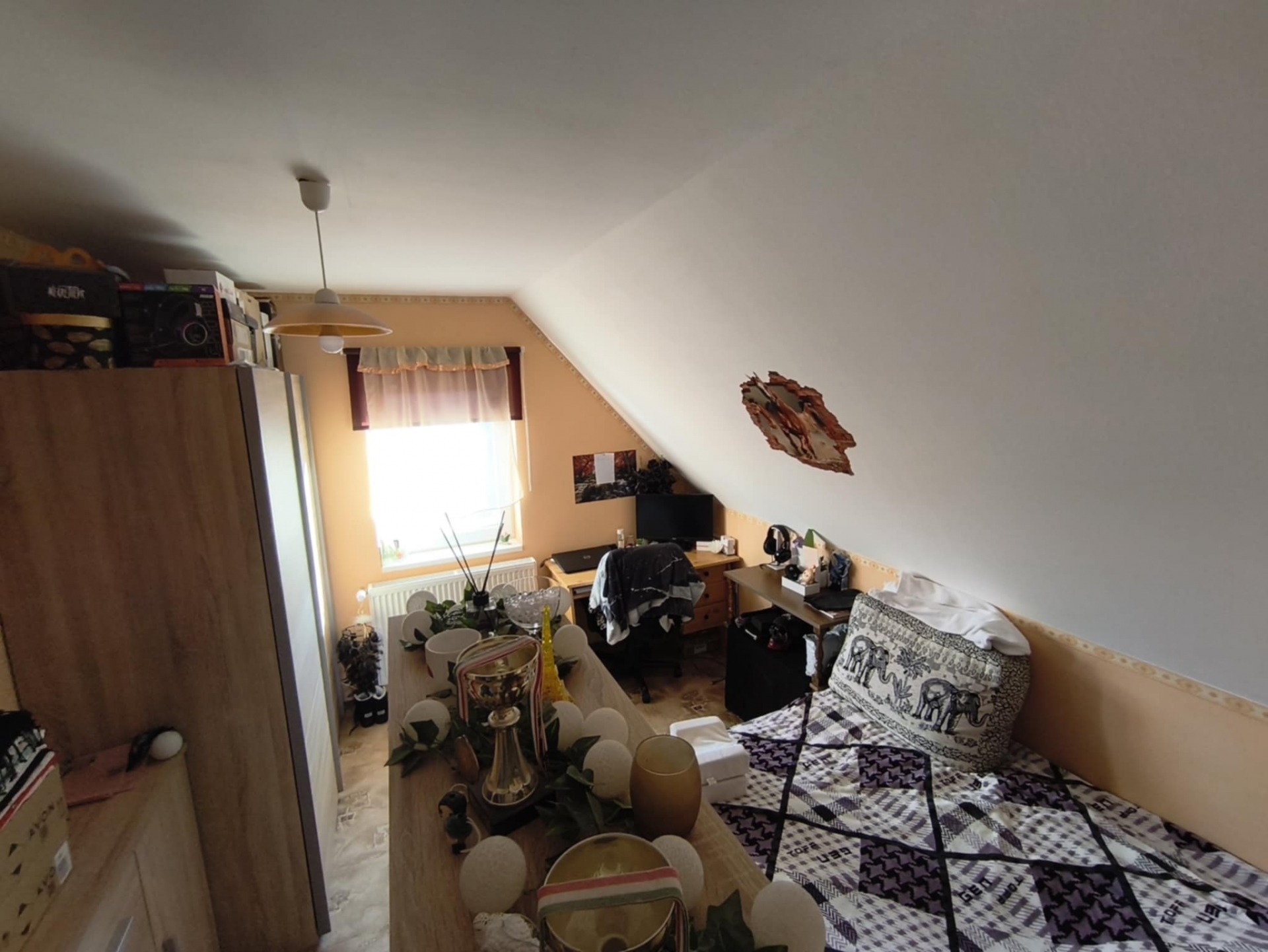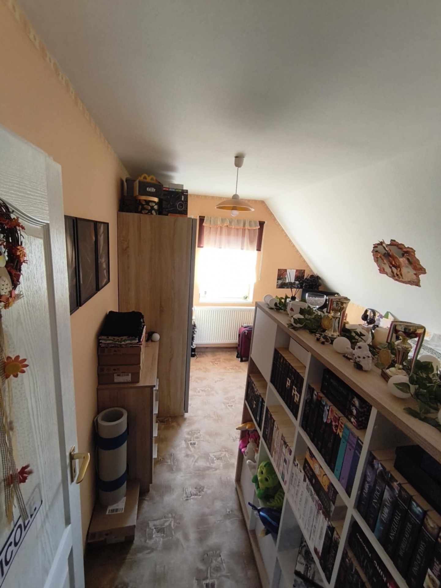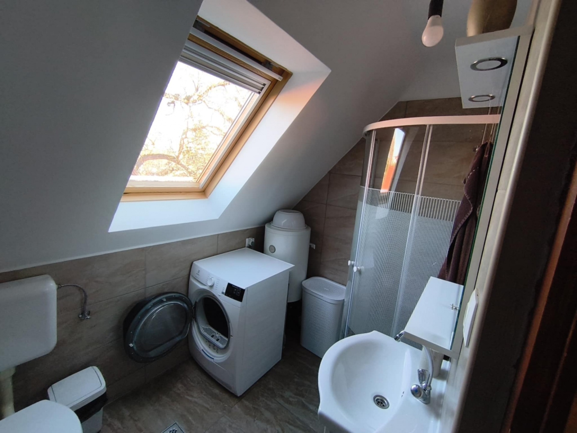 Az emeleten három szoba, és egy félszoba mellett egy zuhanyzós fürdőszoba kapott helyet.