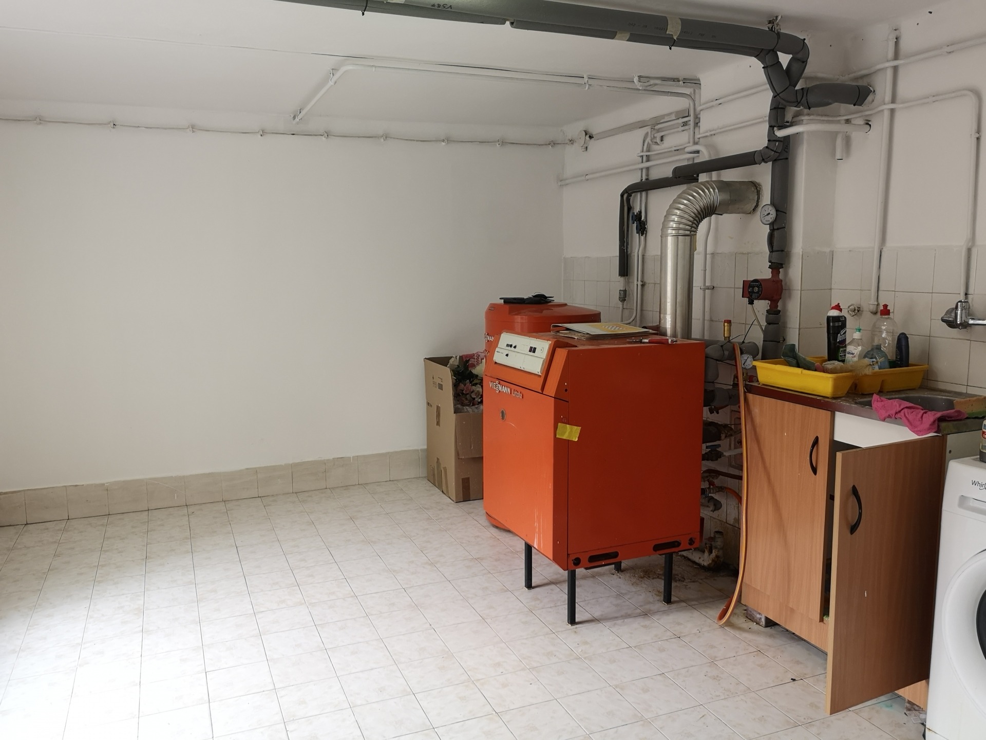 Praktikum: Garázs az alsó szinten, kerti tároló, Viessmann gázrendszer.